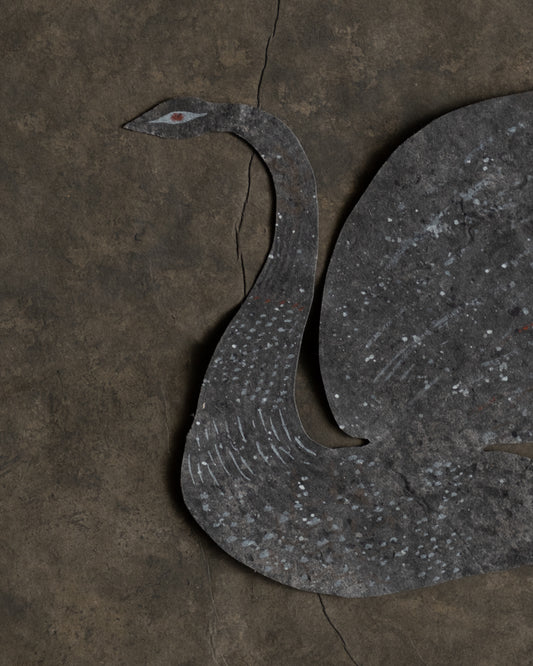 以拼貼與繪畫交織自然與靈性,重構萬物的形與靈,創作如神話般寧靜卻帶有生命力的作品。