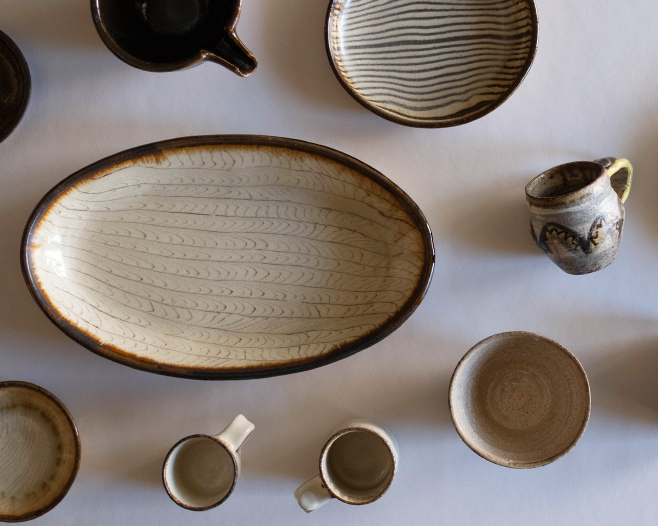 七尾佳洋與七尾詩子是一對以陶為日常的夫妻。佳洋承襲民藝精神,以本格技法磨鍊「練上工法」,展現樸實而深遠的氣質;詩子則以南歐的色彩與感性幽默,塑造出生活中輕盈而自由的幻想。兩人的作品在協調與交錯之間,映照出食器豐富多變的表情。