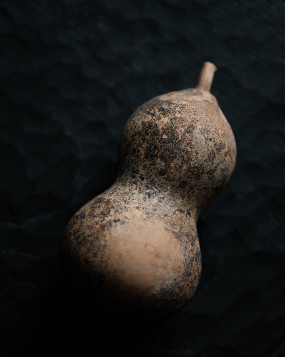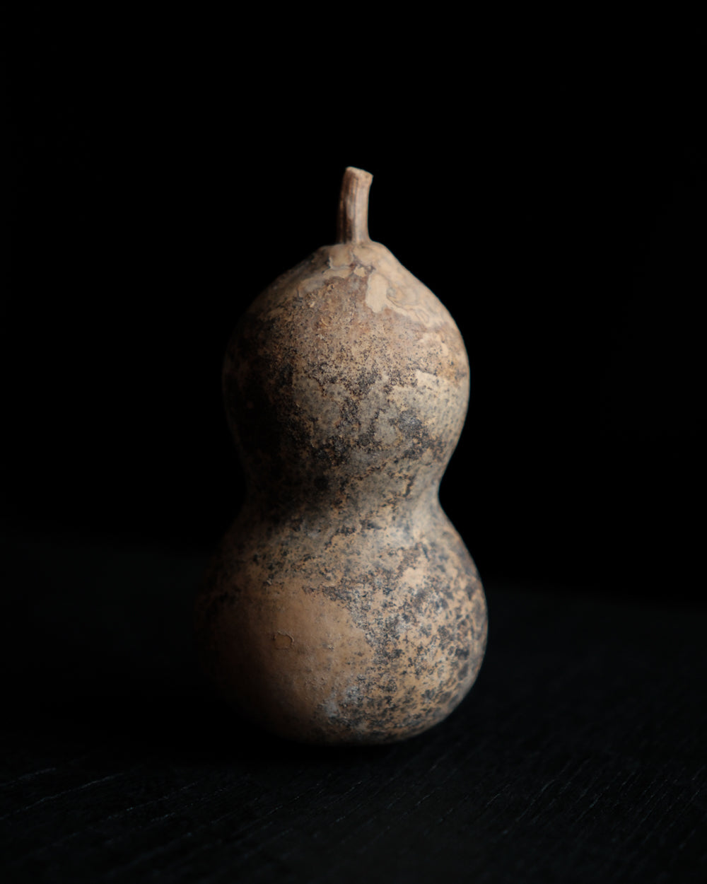 葫蘆作為人類最古老的栽培植物之一,據說源自於非洲,而後被帶往世界各地。因為輕盈、堅韌、形態多變的特質,自古被製作成儲水器、茶器、酒器與樂器等。大村大悟以親自栽培的葫蘆製作器物,將日本傳統漆工藝與葫蘆結合,探索植物與道具之間延續萬年的關係。