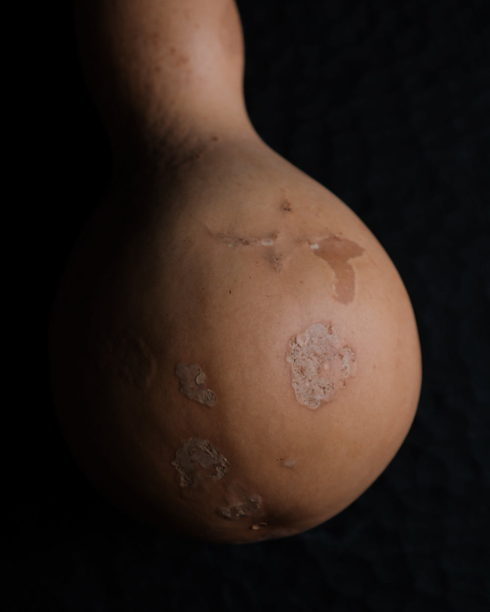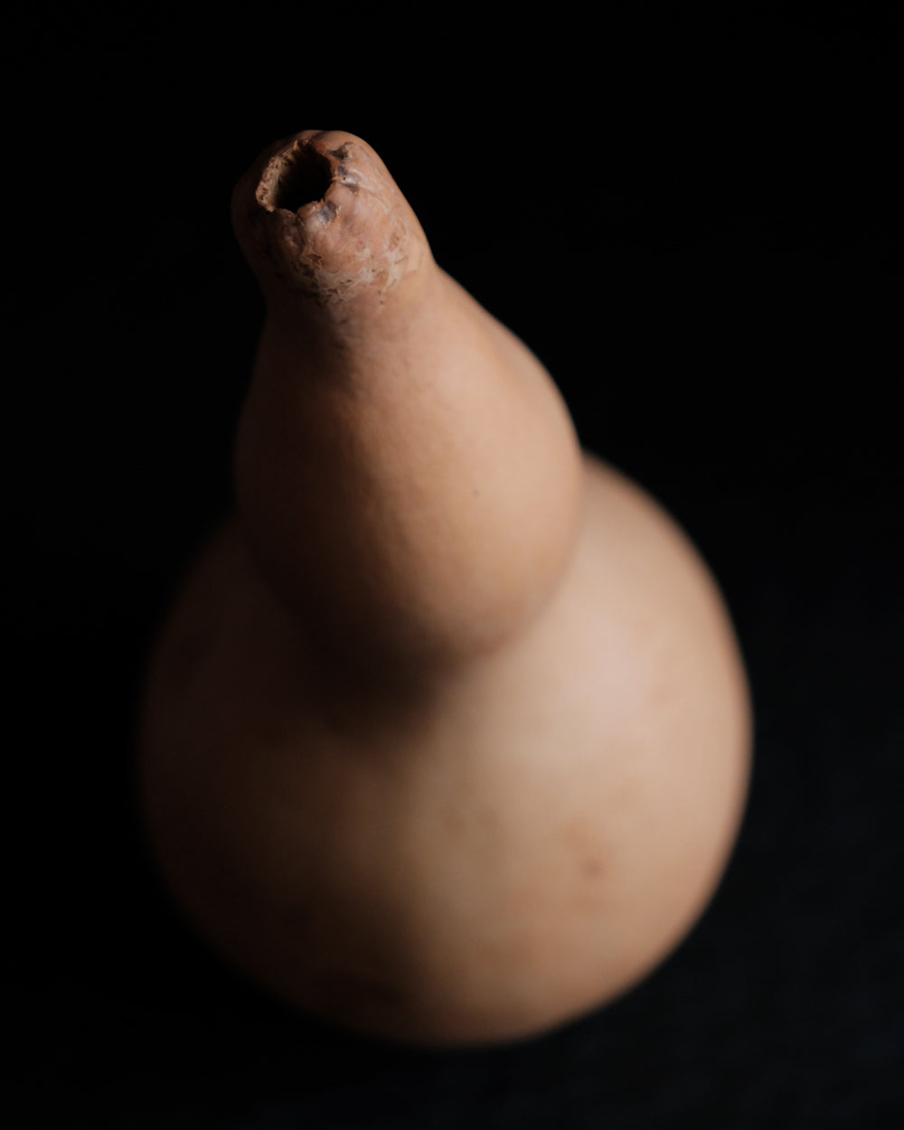 葫蘆作為人類最古老的栽培植物之一,據說源自於非洲,而後被帶往世界各地。因為輕盈、堅韌、形態多變的特質,自古被製作成儲水器、茶器、酒器與樂器等。大村大悟以親自栽培的葫蘆製作器物,將日本傳統漆工藝與葫蘆結合,探索植物與道具之間延續萬年的關係。