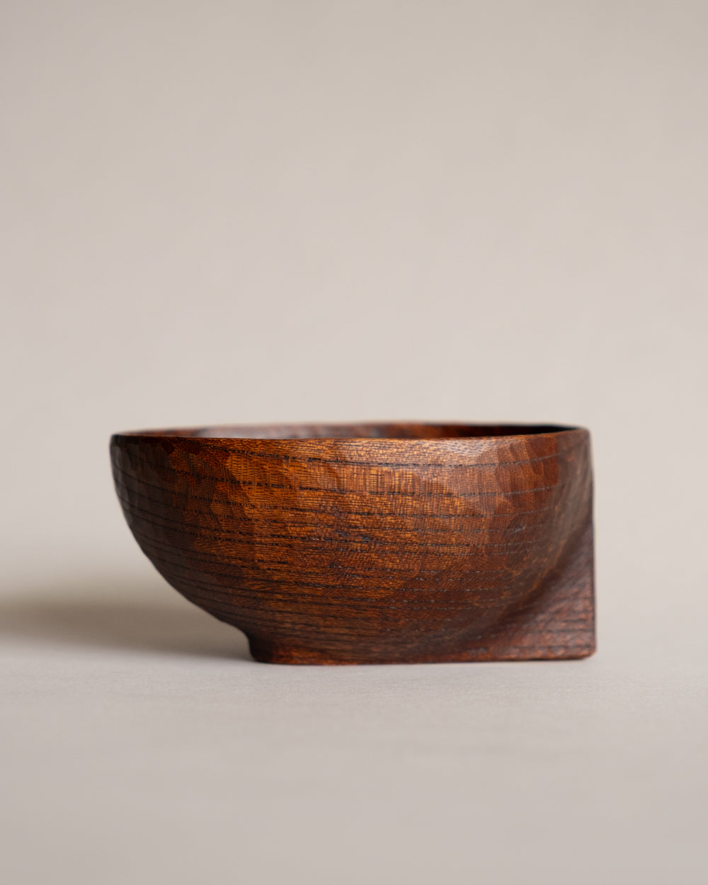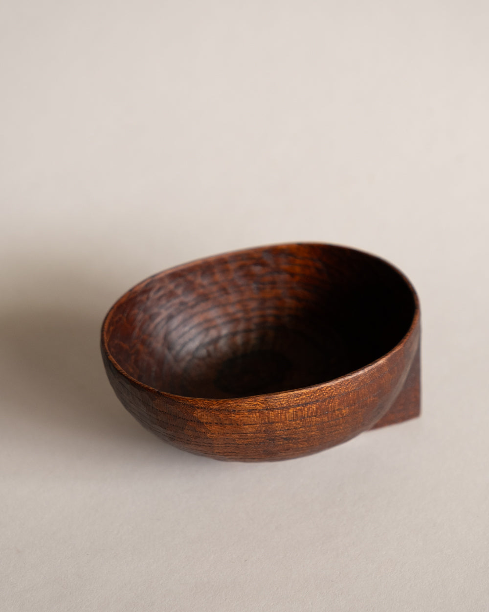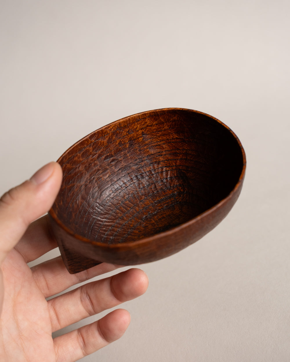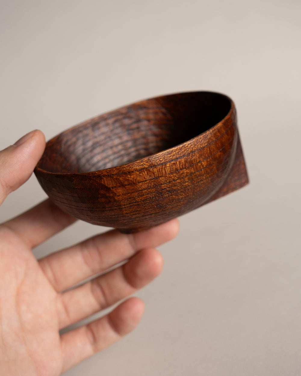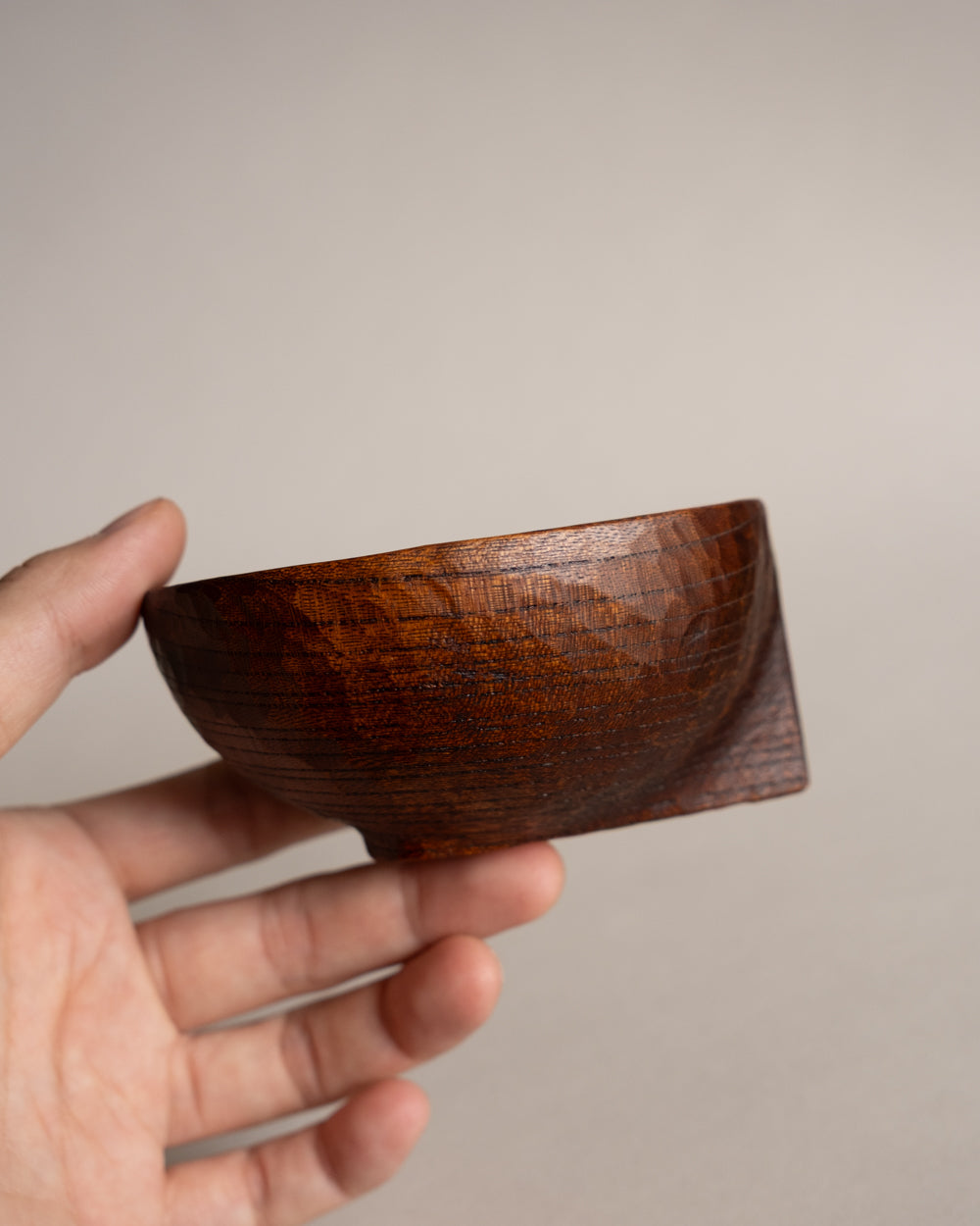 「在農家的生活裡,有時能在裝滿穀物的大袋子中,看到家中不用的漆碗或飯碗。當需要從袋中舀出穀物時,人們會自然伸手拿起身邊的器物——若覺得順手、好用,那件器具便會被長年使用下去,成為生活的一部分。大村先生所製作的『一合椀』,正是象徵著農家生活中樸實景象的手作之物。」——塚本美樹