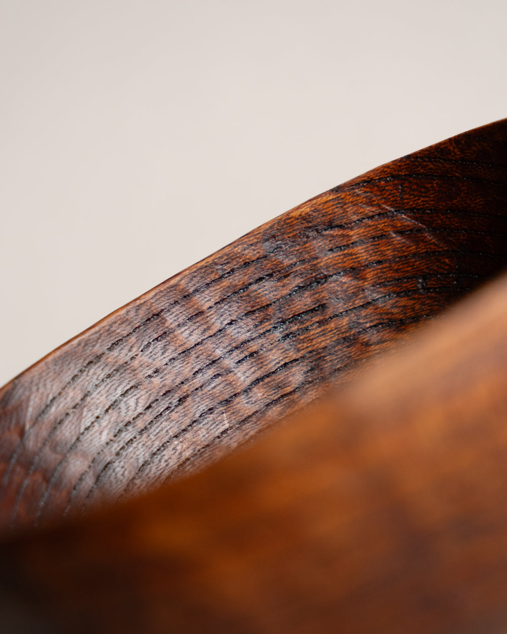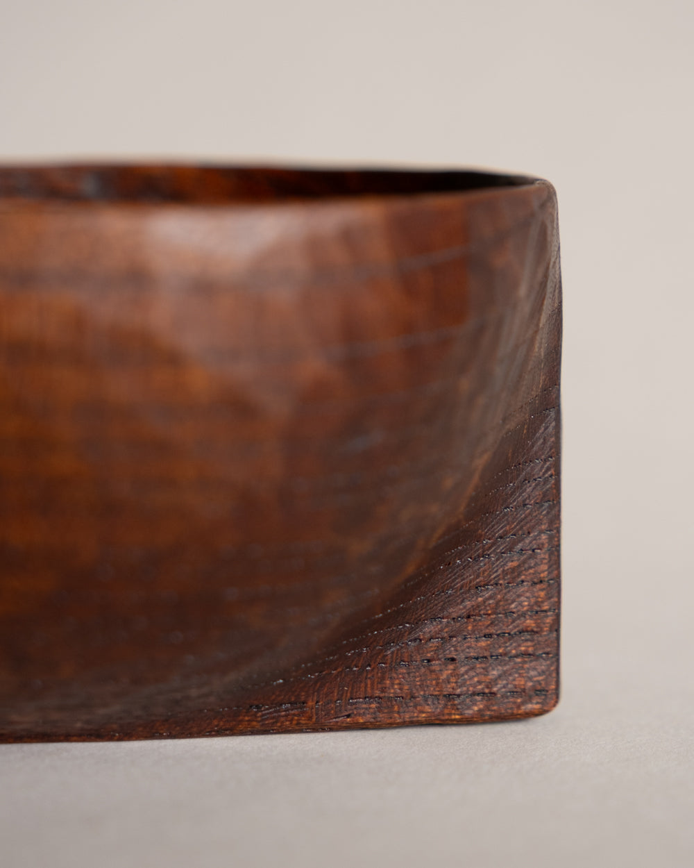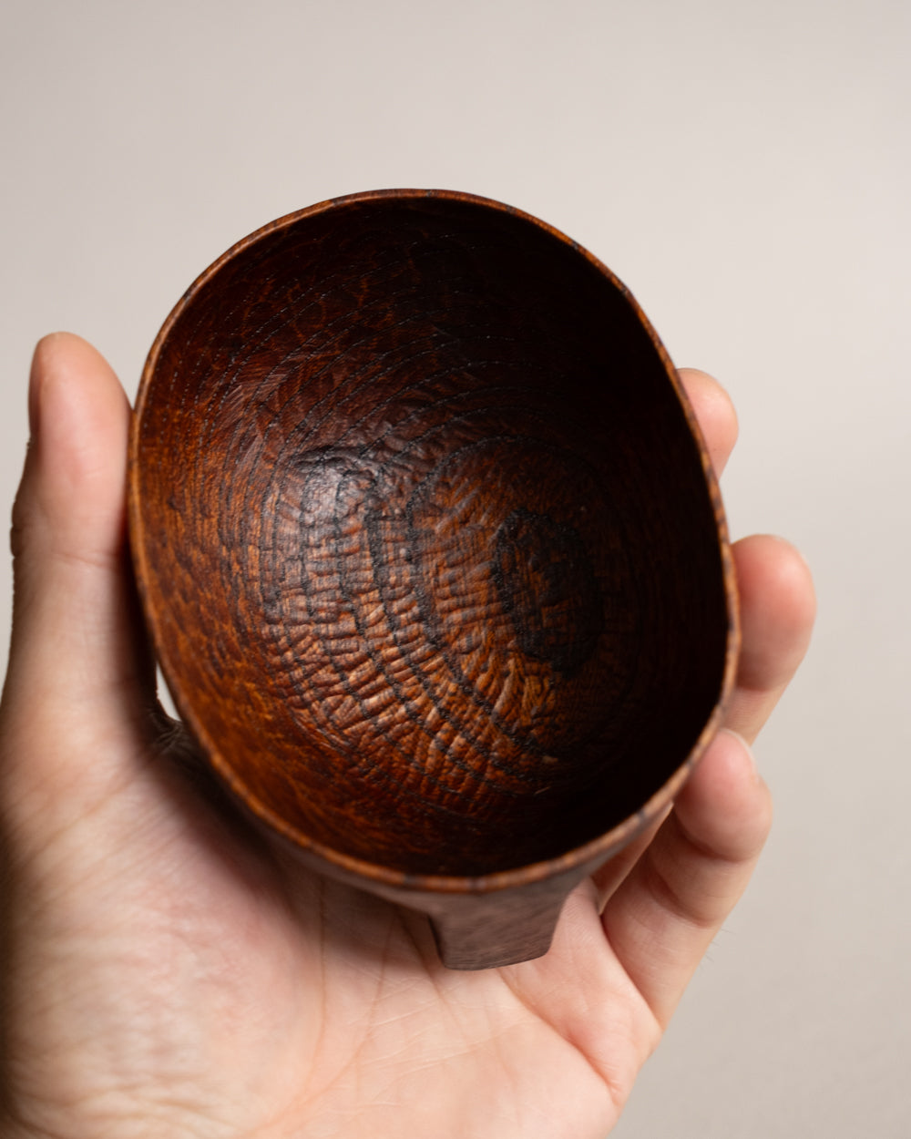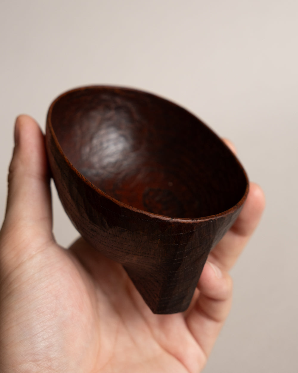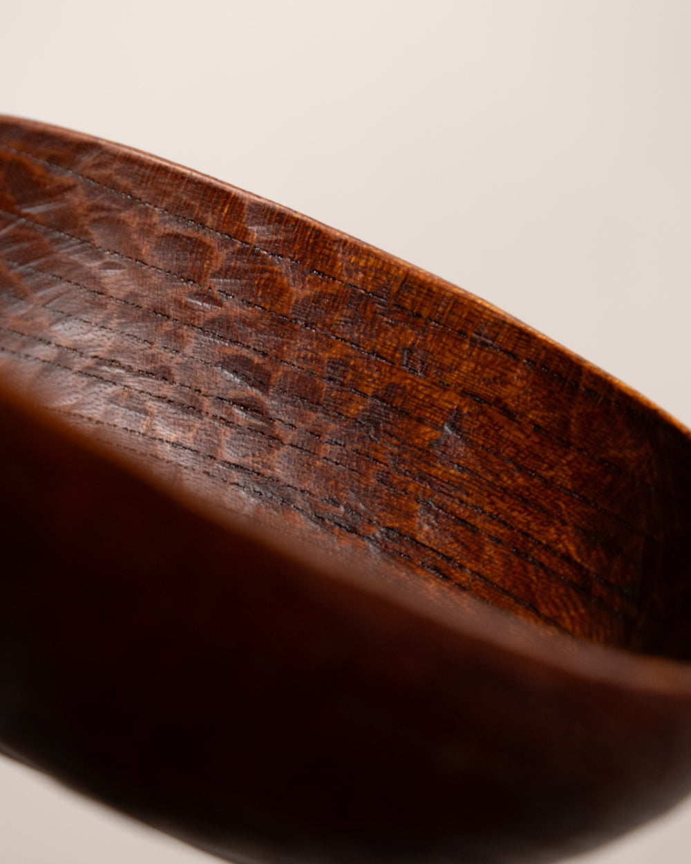 「在農家的生活裡,有時能在裝滿穀物的大袋子中,看到家中不用的漆碗或飯碗。當需要從袋中舀出穀物時,人們會自然伸手拿起身邊的器物——若覺得順手、好用,那件器具便會被長年使用下去,成為生活的一部分。大村先生所製作的『一合椀』,正是象徵著農家生活中樸實景象的手作之物。」——塚本美樹