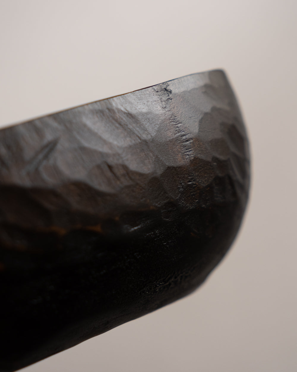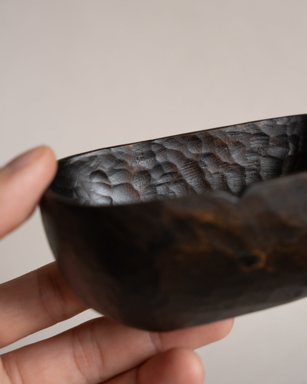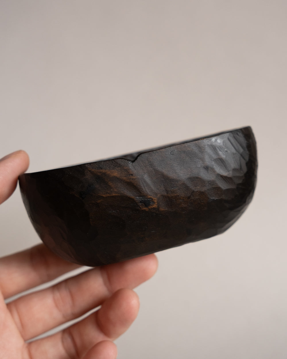 「在農家的生活裡,有時能在裝滿穀物的大袋子中,看到家中不用的漆碗或飯碗。當需要從袋中舀出穀物時,人們會自然伸手拿起身邊的器物——若覺得順手、好用,那件器具便會被長年使用下去,成為生活的一部分。大村先生所製作的『一合椀』,正是象徵著農家生活中樸實景象的手作之物。」——塚本美樹