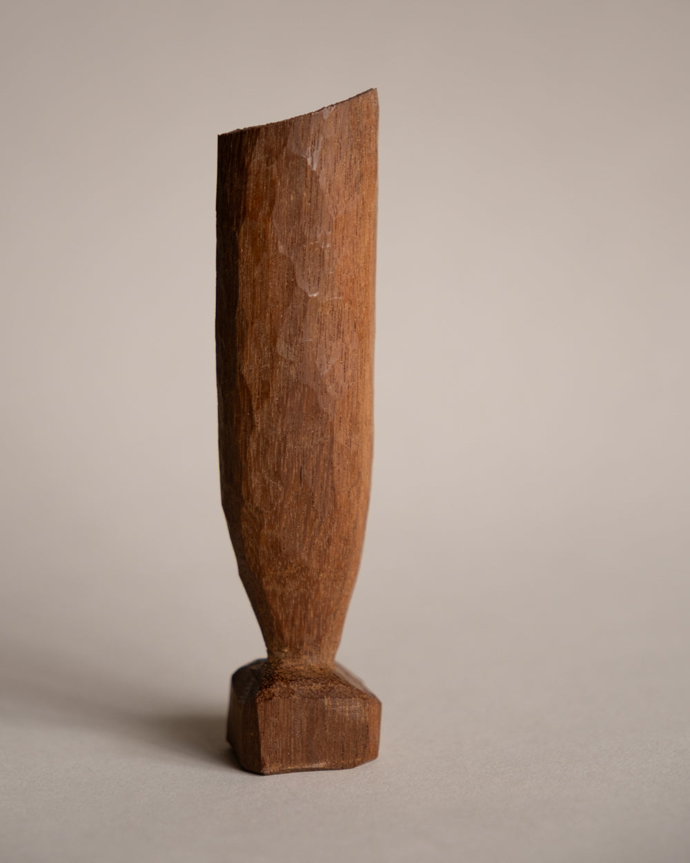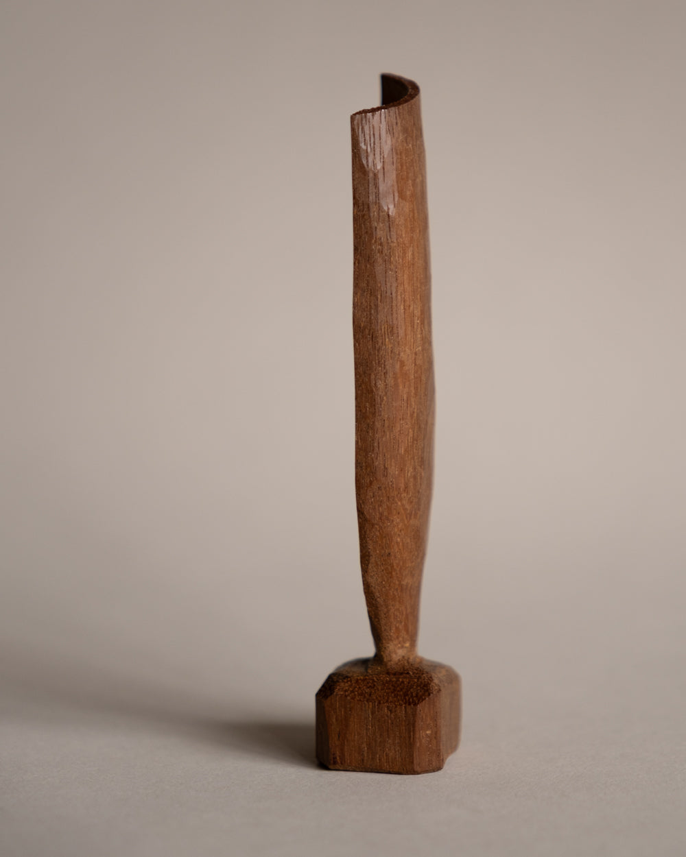 這些小雕刻作品融合了不同的技法和表現形式,有的會使用機台刻磨形狀、有的則使用手工刻鑿。如果在過程中,刻出他自己喜歡的形狀,他會將其製作成大型的雕塑作品;而有的形狀他則覺得維持迷你的尺寸是最理想的。