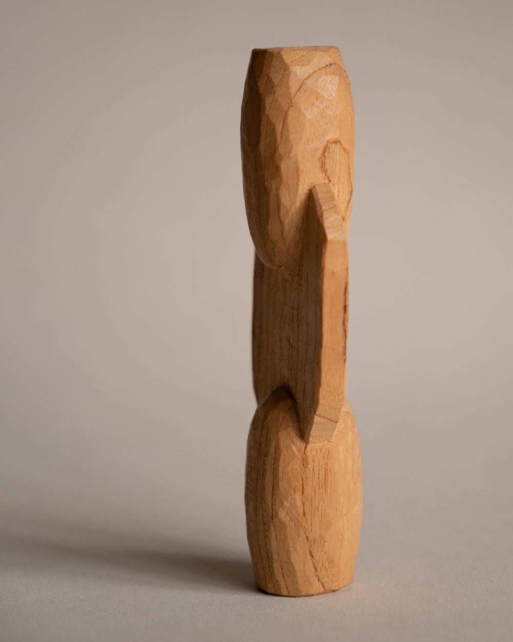 這些小雕刻作品融合了不同的技法和表現形式,有的會使用機台刻磨形狀、有的則使用手工刻鑿。如果在過程中,刻出他自己喜歡的形狀,他會將其製作成大型的雕塑作品;而有的形狀他則覺得維持迷你的尺寸是最理想的。