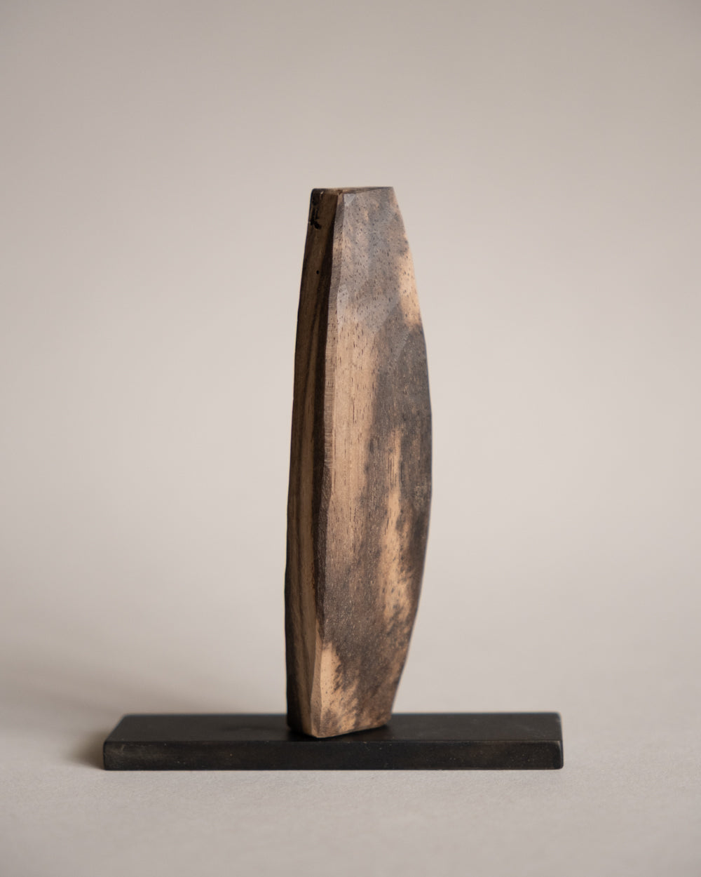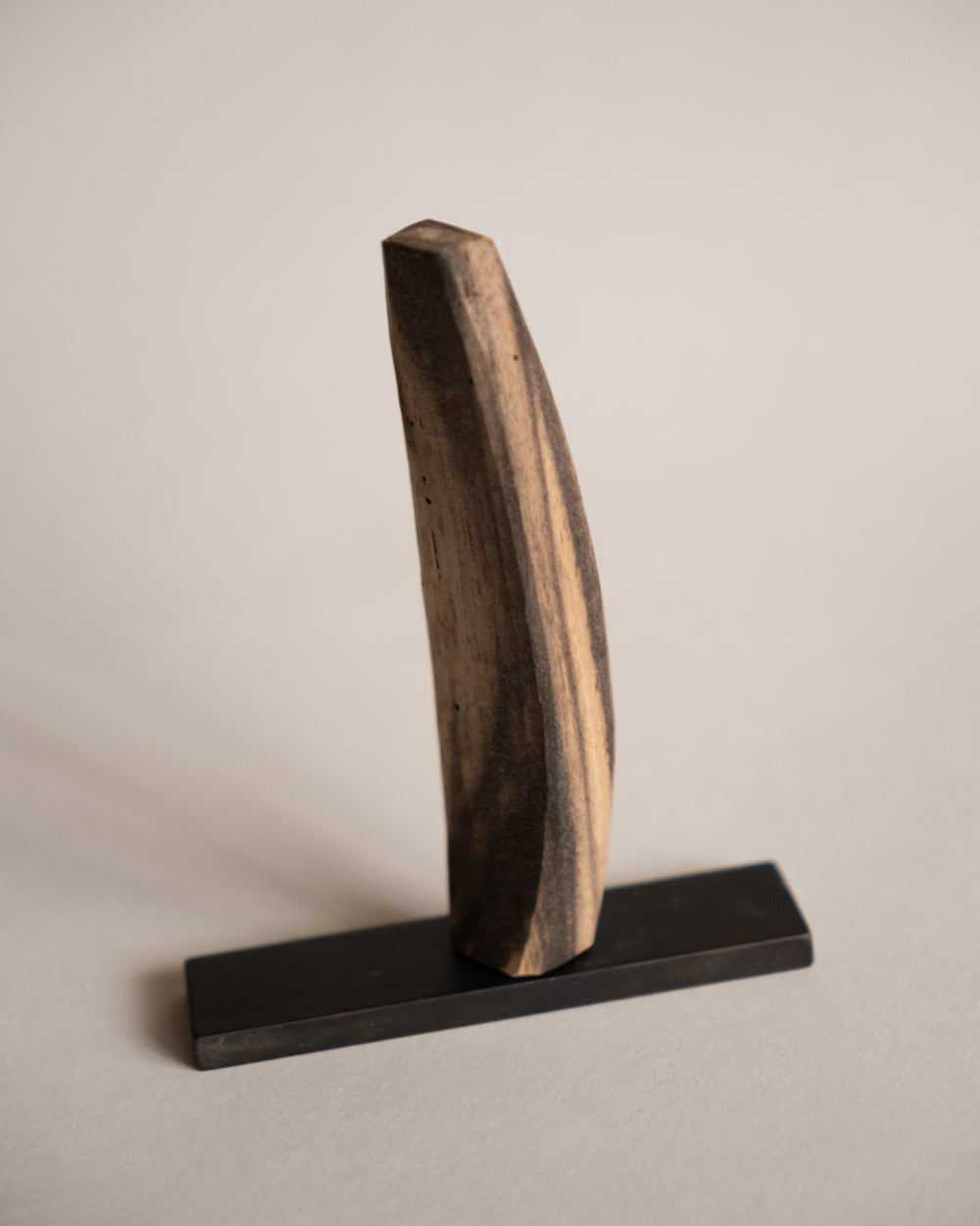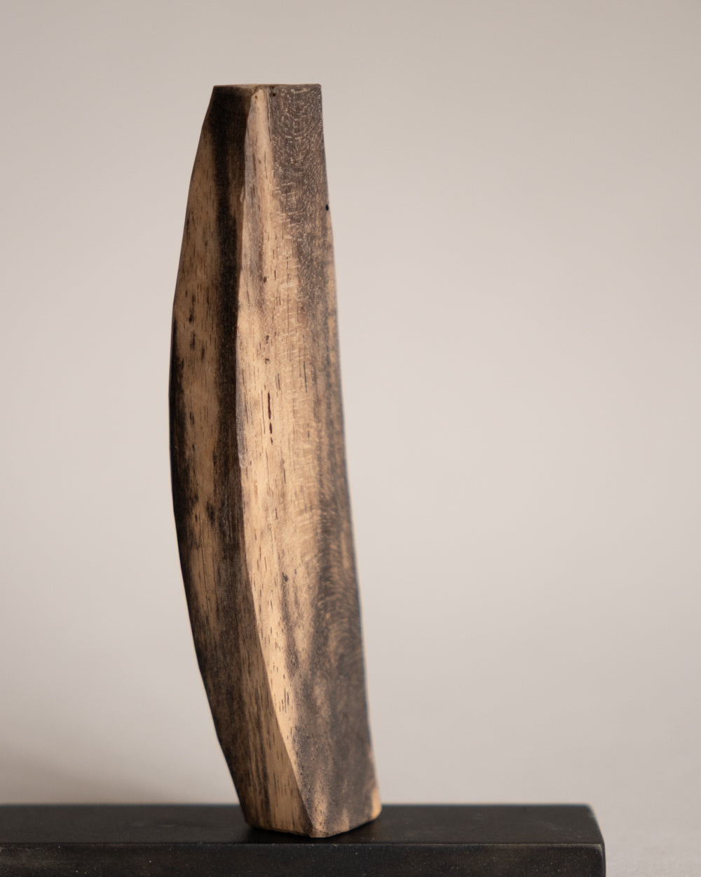 這些小雕刻作品融合了不同的技法和表現形式,有的會使用機台刻磨形狀、有的則使用手工刻鑿。如果在過程中,刻出他自己喜歡的形狀,他會將其製作成大型的雕塑作品;而有的形狀他則覺得維持迷你的尺寸是最理想的。