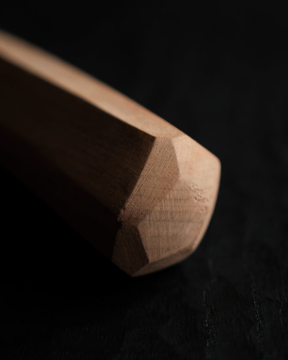 以自然木鑿刻的研磨搗棒,適用於香料、五穀雜糧的研磨,也可用來搗碎堅果或其他乾性食材、藥材等,是少見具有雕塑線條的研磨棒。須自行搭配研磨缽或堅實的底缽。