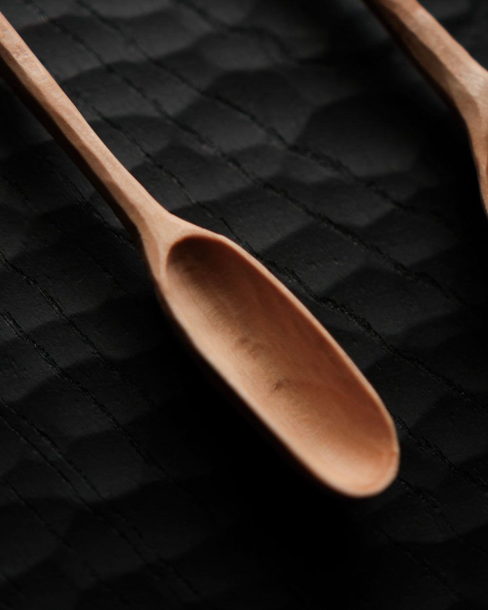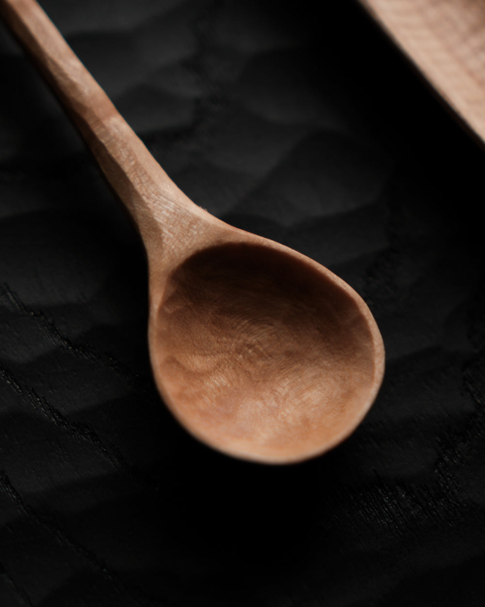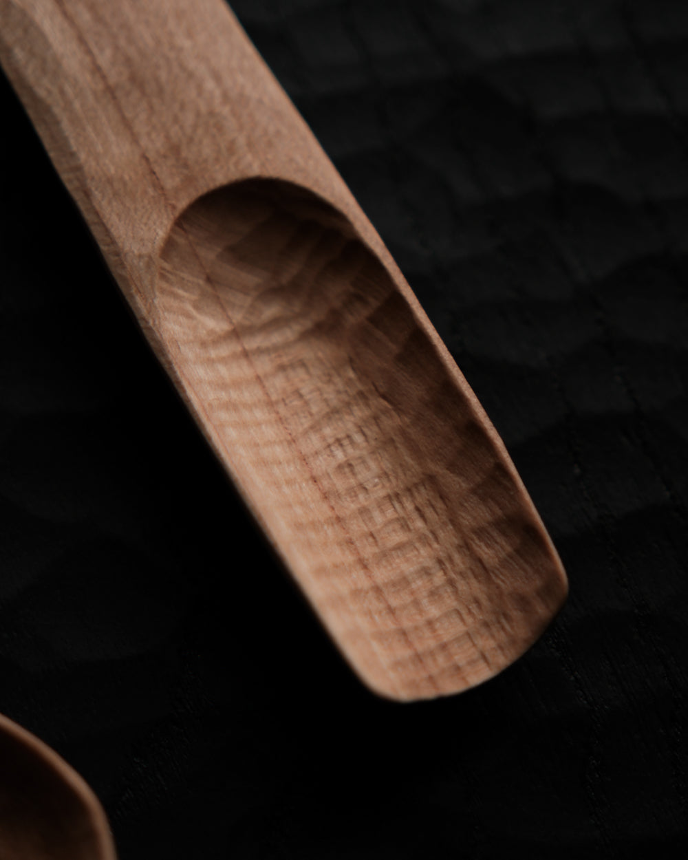 以自然木鑿刻的小木匙,適合作為鹽、糖等調味料與香料的測量匙使用。表面為自然漆塗層,便於清潔與照顧。
