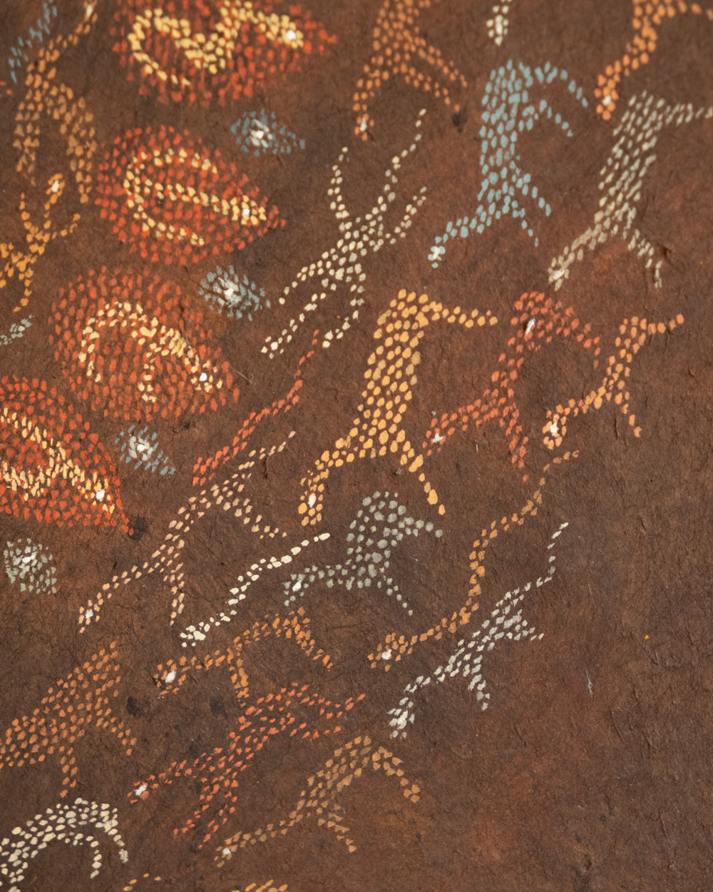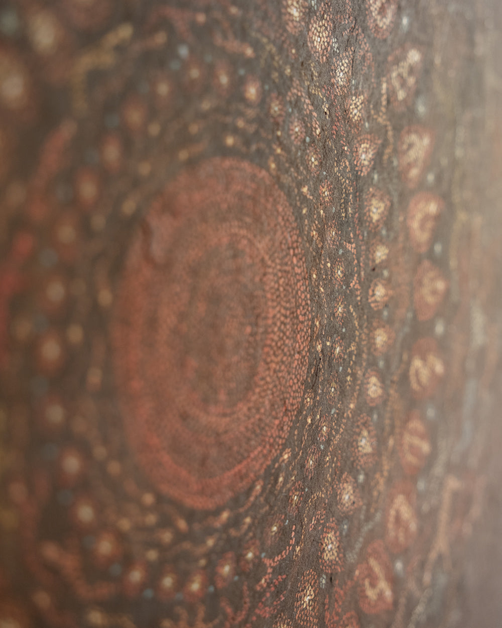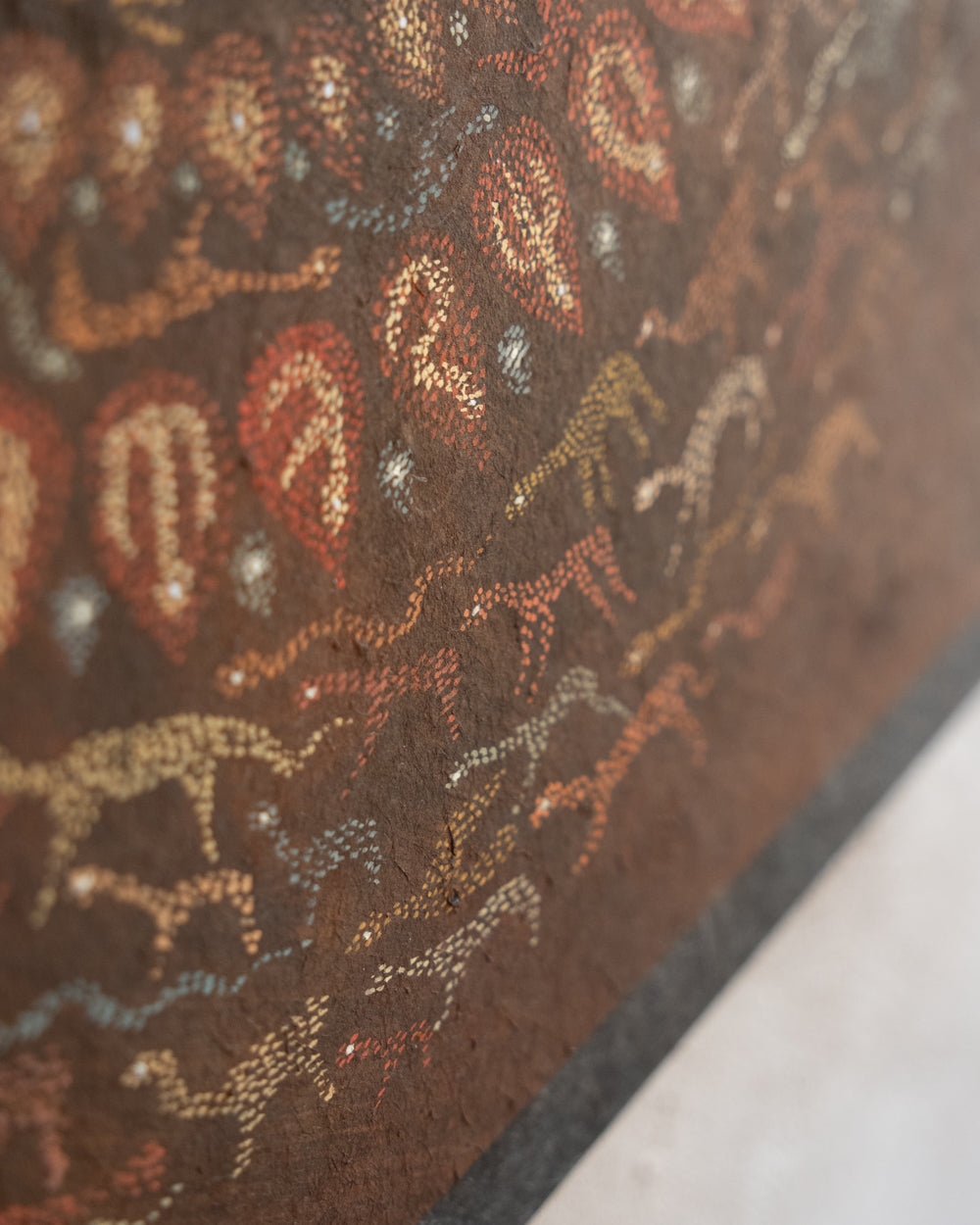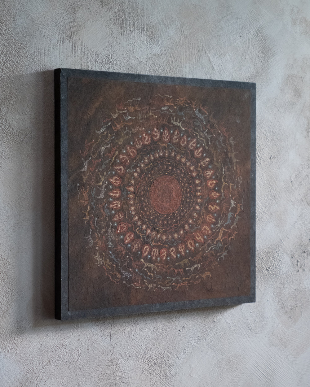 這樣的過程就像進入冥想般,無數的點點相連,讓人聯想到原住民的點描繪畫。而那些逐漸浮現的形象,仿佛引領著我回溯到「形的源頭,生命的起點」。作為一種追溯繪畫的起源、乃至世界起源的行為,點描這種繪畫形式,至今仍深深地吸引著熊谷。