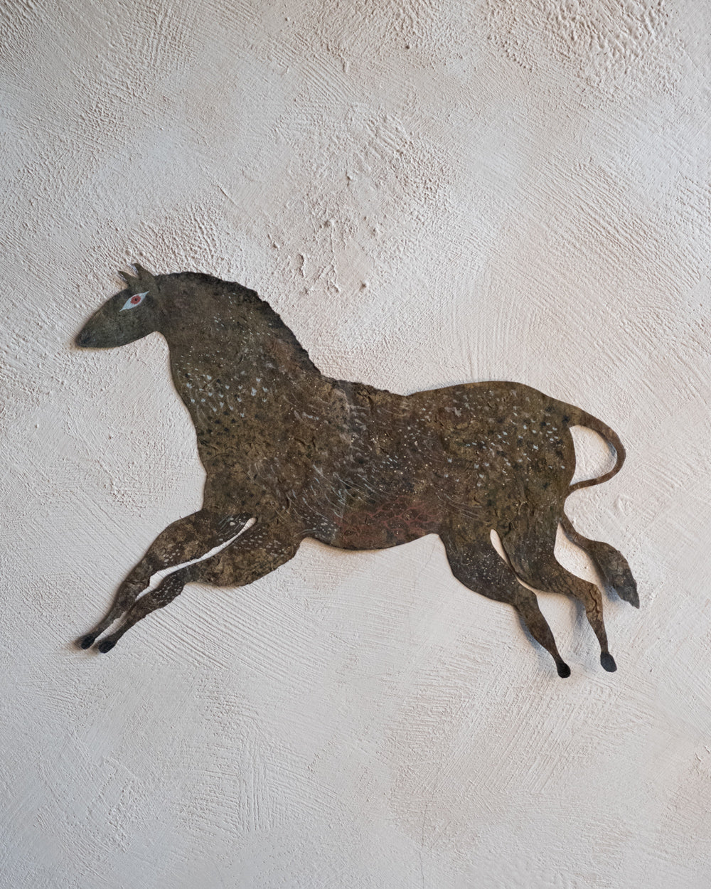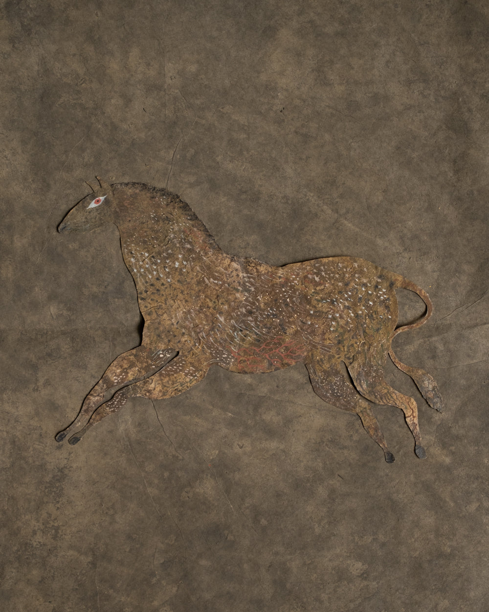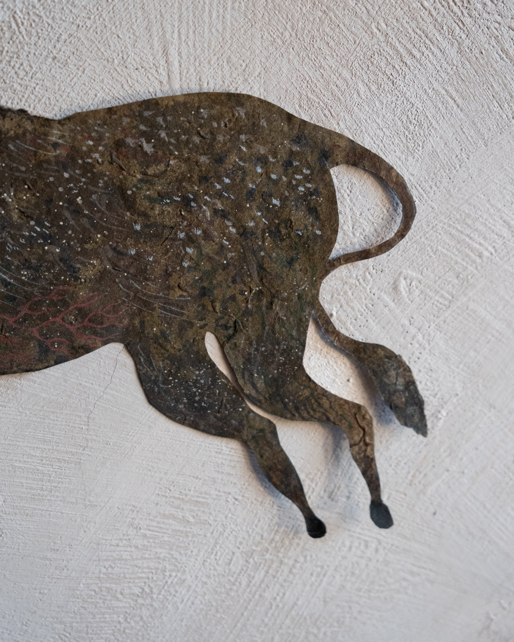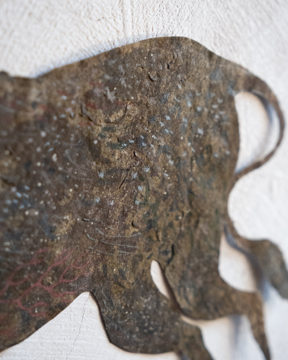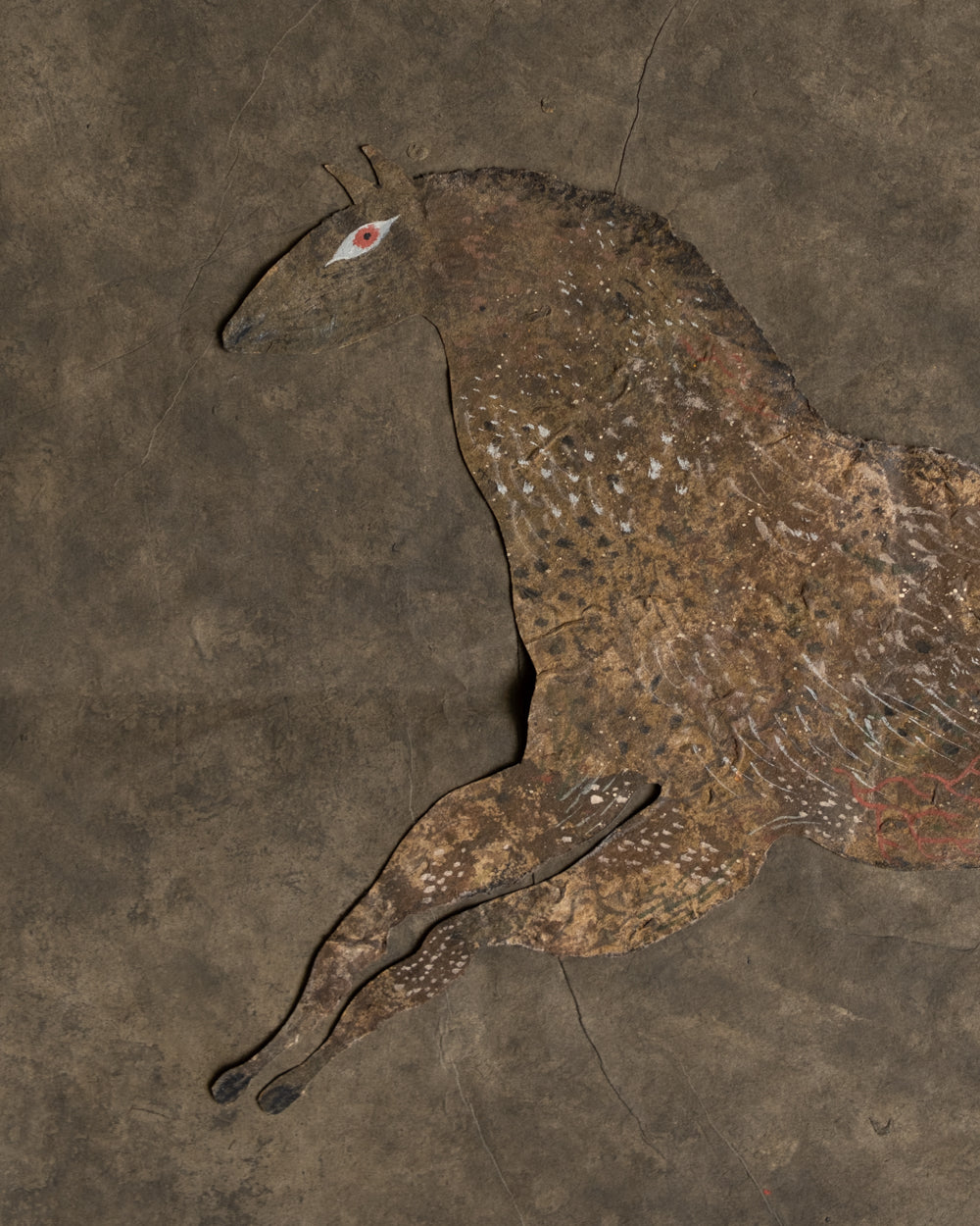 雲、星辰、石頭、落葉⋯⋯身邊的一切都可能化為生物的形象。據說在古代洞窟壁畫中,常能看到巧妙利用岩壁的凹凸起伏,使動物壁畫立體生動的景象。或許他們正是在洞窟壁面無數的褶皺裡,看見了無數湧動的生命。那種曾經存在於古代人眼中的目光,無疑是創造的泉源。」