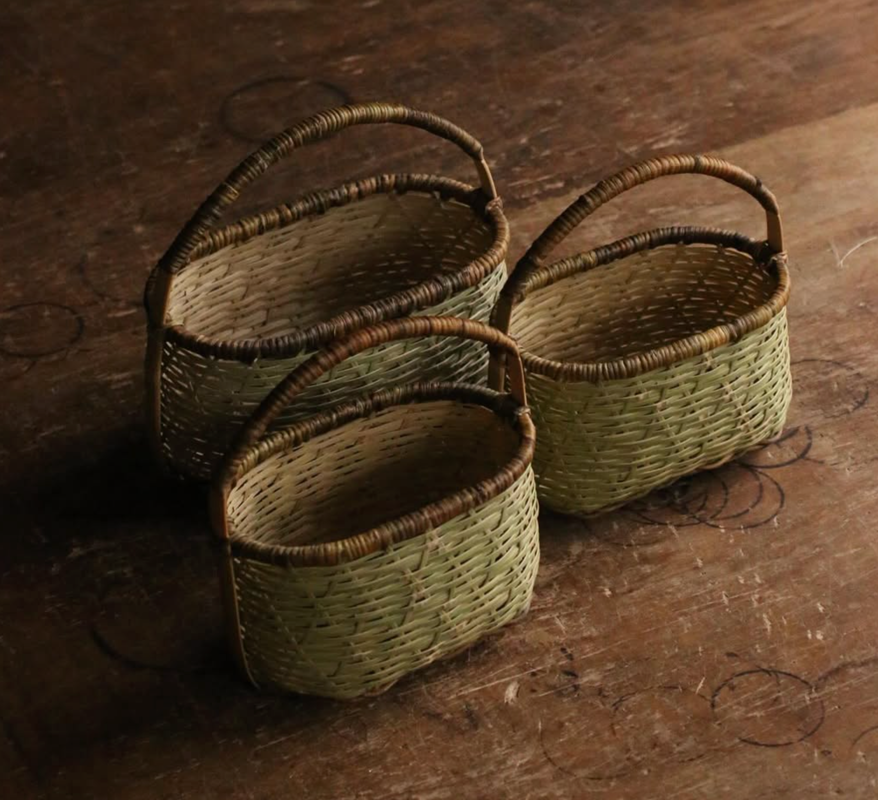 -㓛刀匡允以雙手重新編織與日常相連的器物,他以竹、樹皮等自然素材為起點,製作籠具與各式編織物,讓材料在時間中循環。對㓛刀而言,籠並非單純的物件,而是承載生活痕跡的存在。