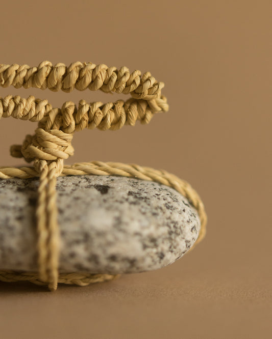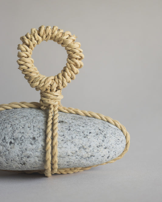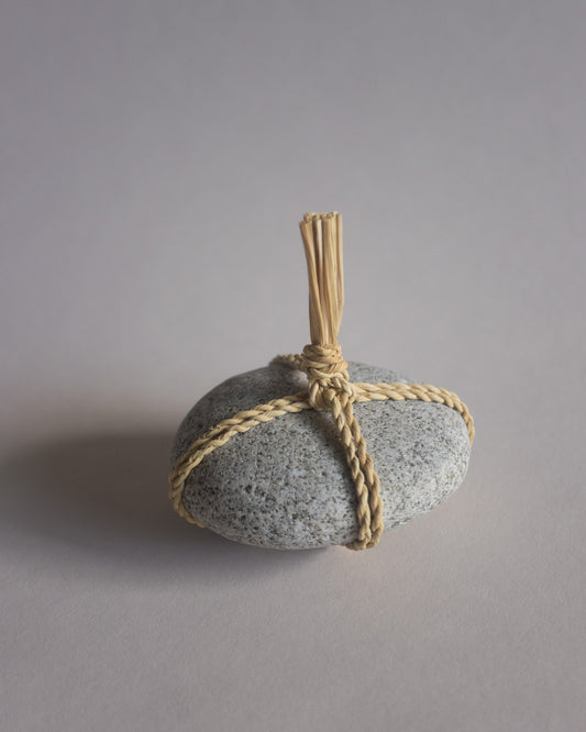 Wara藁(わら),在日文中為稻草之意。生活於日本靜岡的絵里,曾在觸摸稻草時,感受到一種接近冥想狀態的生命體驗。此後她關注著時間、空間,與心靈深邃之處。以稻草的編織藝術與關守石作品為核心,在創作中將古老文化轉譯為現代語彙,傳遞日本美學意識中的餘白之美。
