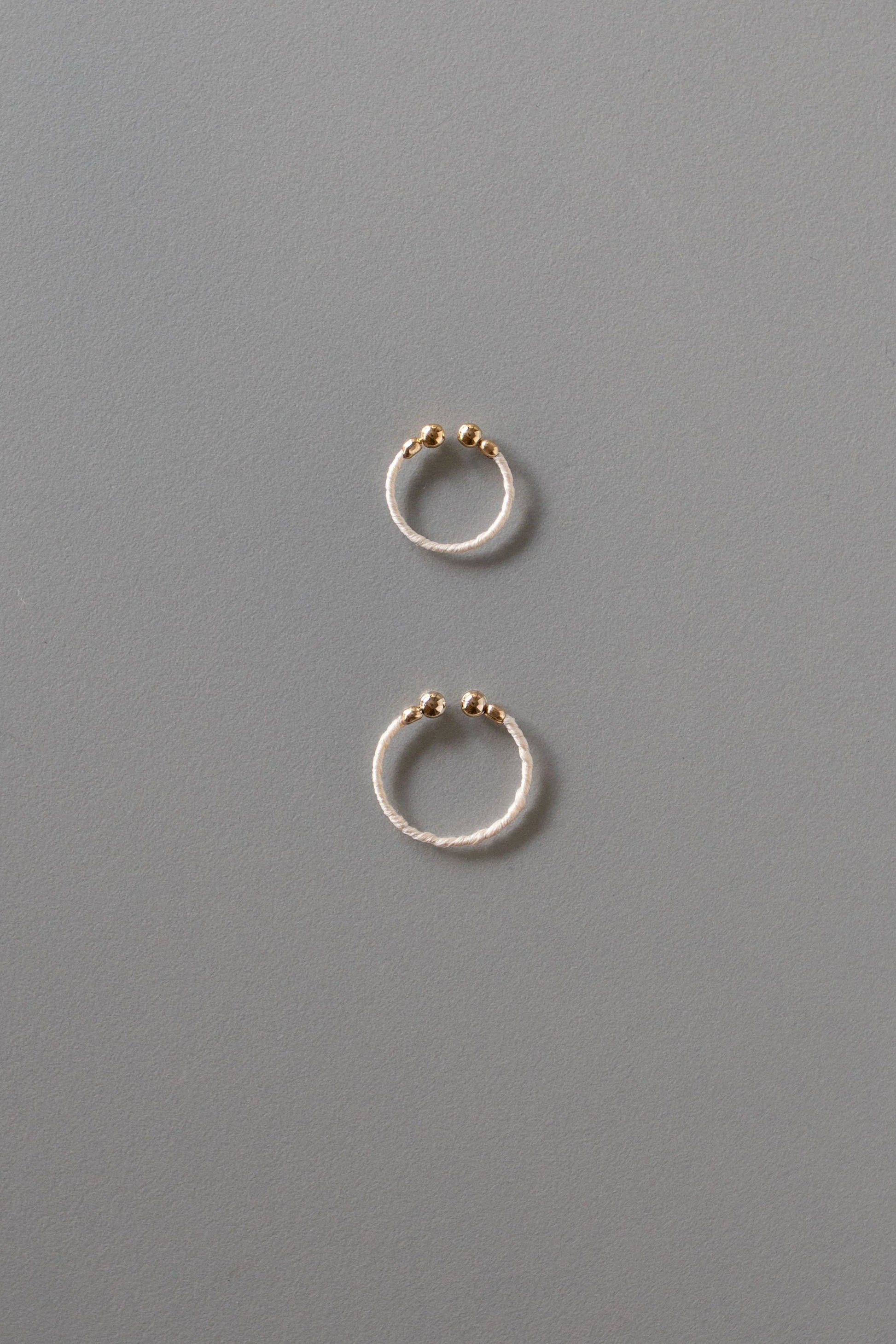 絲線內側使用如彈簧般具有彈性的金屬線,隙縫展開時即可輕鬆配戴或取下。也能透過施力微調開合,依需求調整配戴的寬度。能自然貼合每個人的耳型,不易滑落,配戴起來安心穩定。建議將耳扣配戴在耳朵軟骨的凹陷處,能更好地固定。
