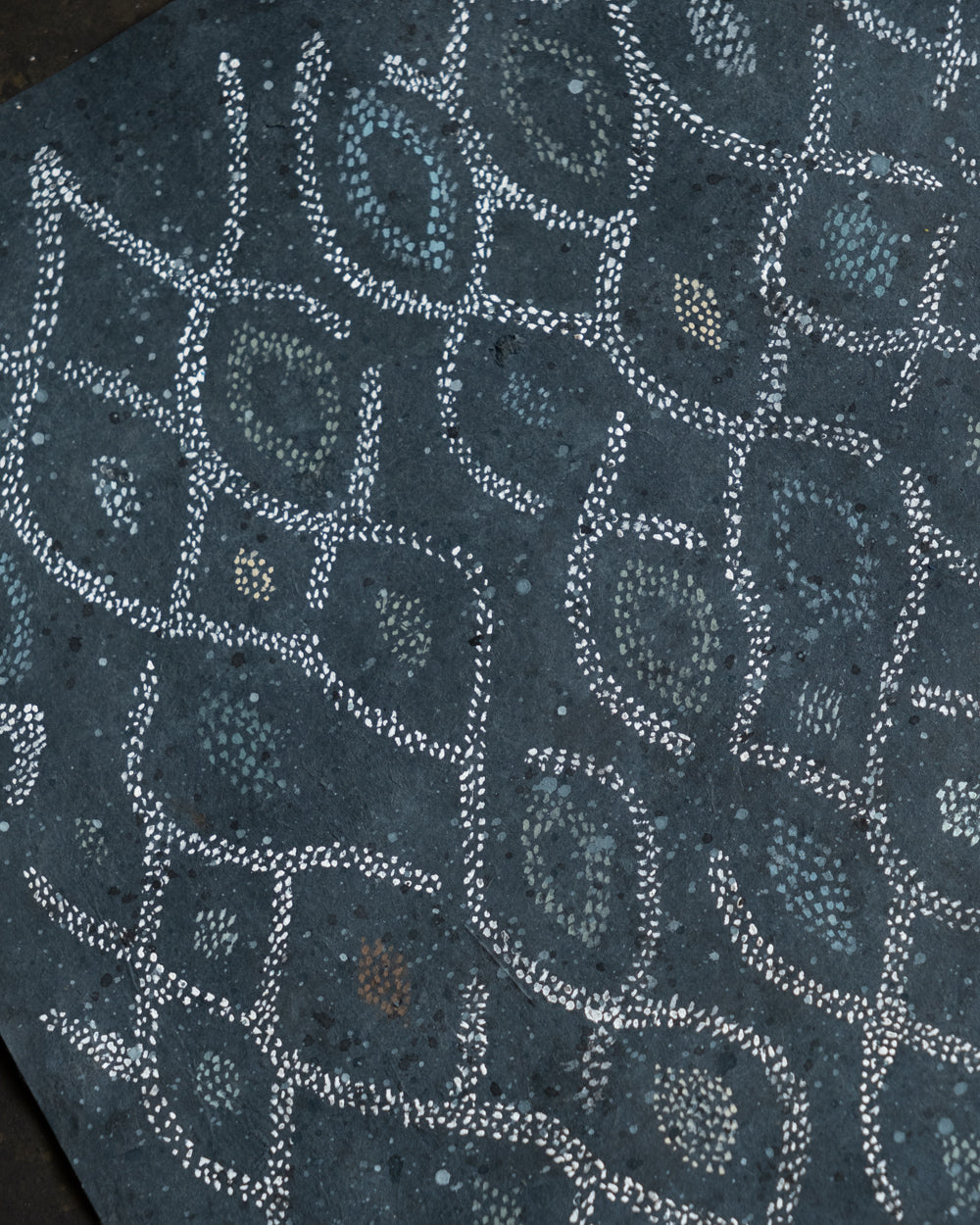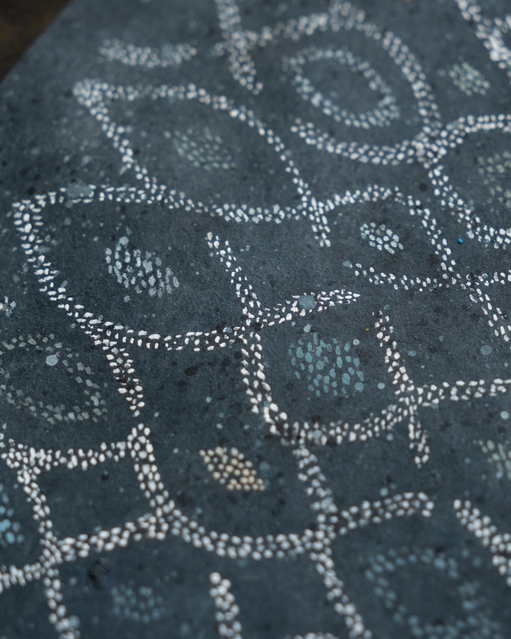 這樣的過程就像進入冥想般,無數的點點相連,讓人聯想到原住民的點描繪畫。而那些逐漸浮現的形象,仿佛引領著我回溯到「形的源頭,生命的起點」。作為一種追溯繪畫的起源、乃至世界起源的行為,點描這種繪畫形式,至今仍深深地吸引著熊谷。
