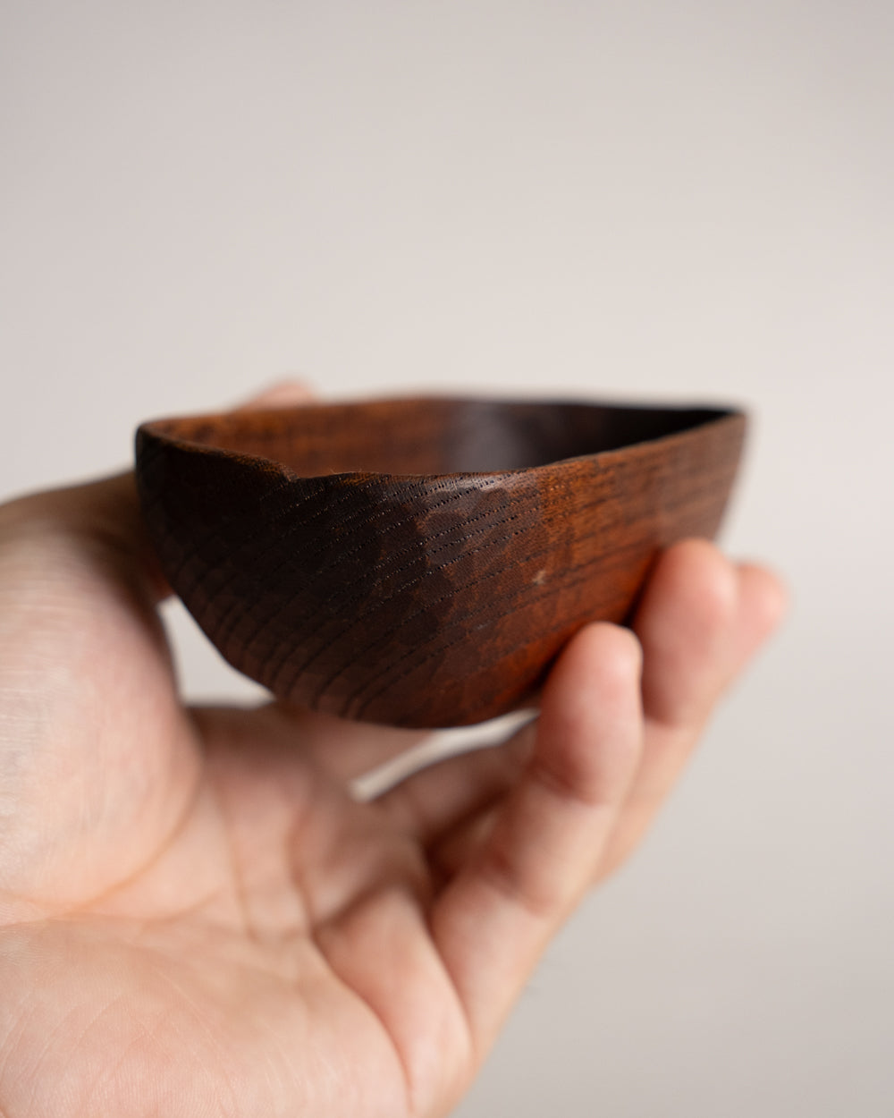 「在農家的生活裡,有時能在裝滿穀物的大袋子中,看到家中不用的漆碗或飯碗。當需要從袋中舀出穀物時,人們會自然伸手拿起身邊的器物——若覺得順手、好用,那件器具便會被長年使用下去,成為生活的一部分。大村先生所製作的『一合椀』,正是象徵著農家生活中樸實景象的手作之物。」——塚本美樹