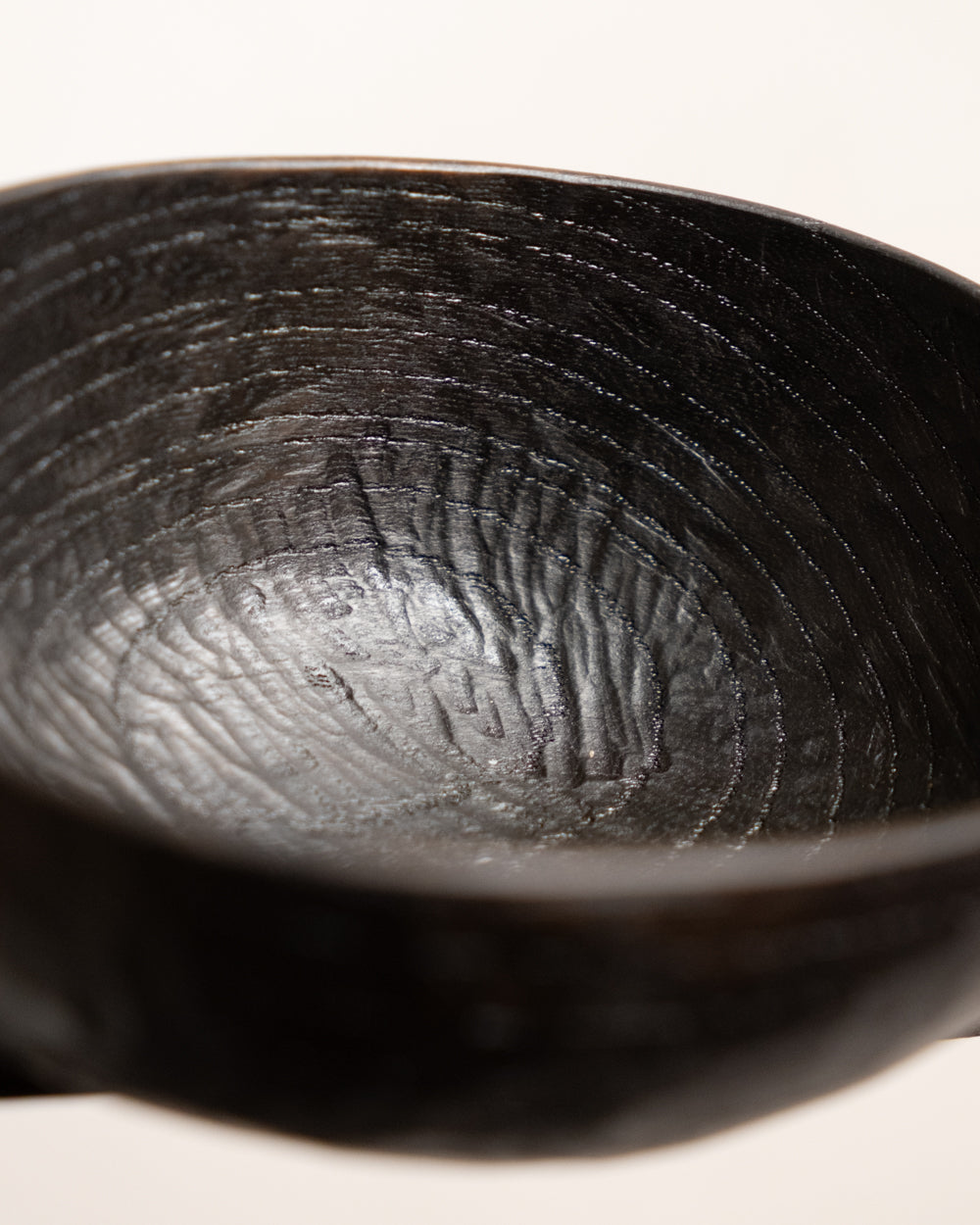 「在農家的生活裡,有時能在裝滿穀物的大袋子中,看到家中不用的漆碗或飯碗。當需要從袋中舀出穀物時,人們會自然伸手拿起身邊的器物——若覺得順手、好用,那件器具便會被長年使用下去,成為生活的一部分。大村先生所製作的『一合椀』,正是象徵著農家生活中樸實景象的手作之物。」——塚本美樹