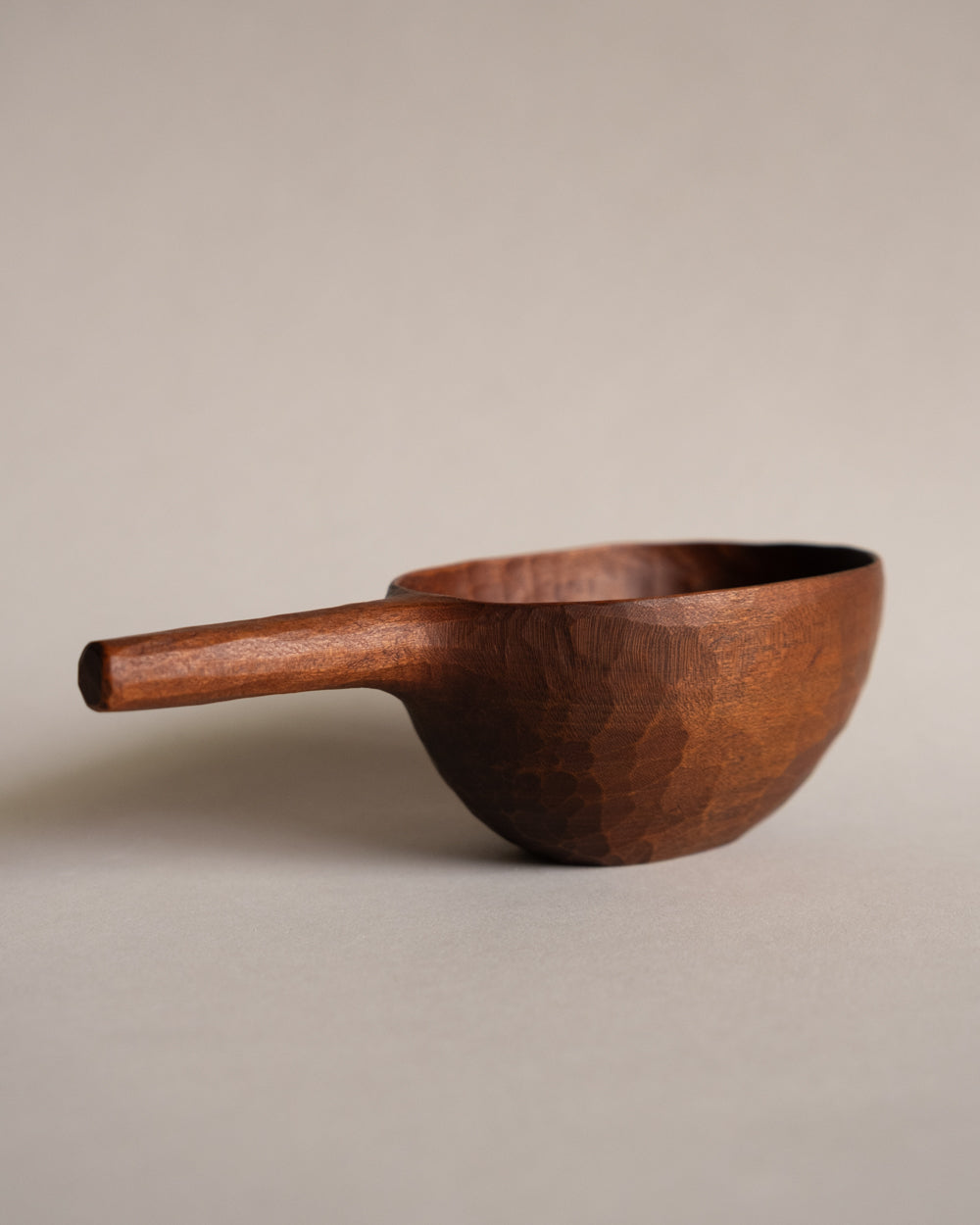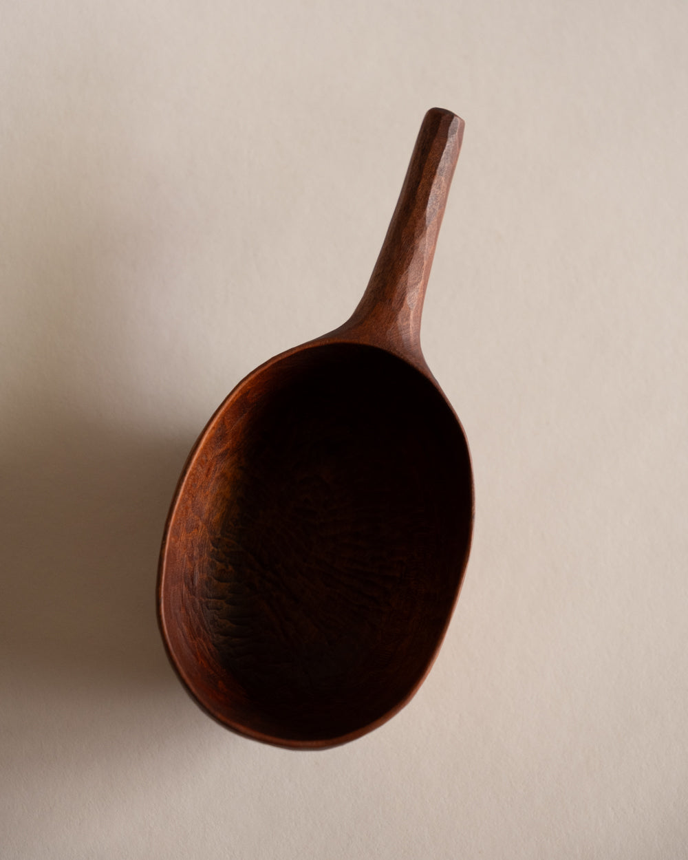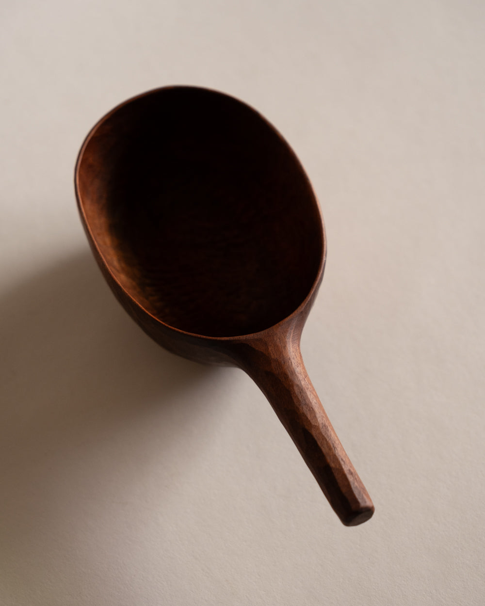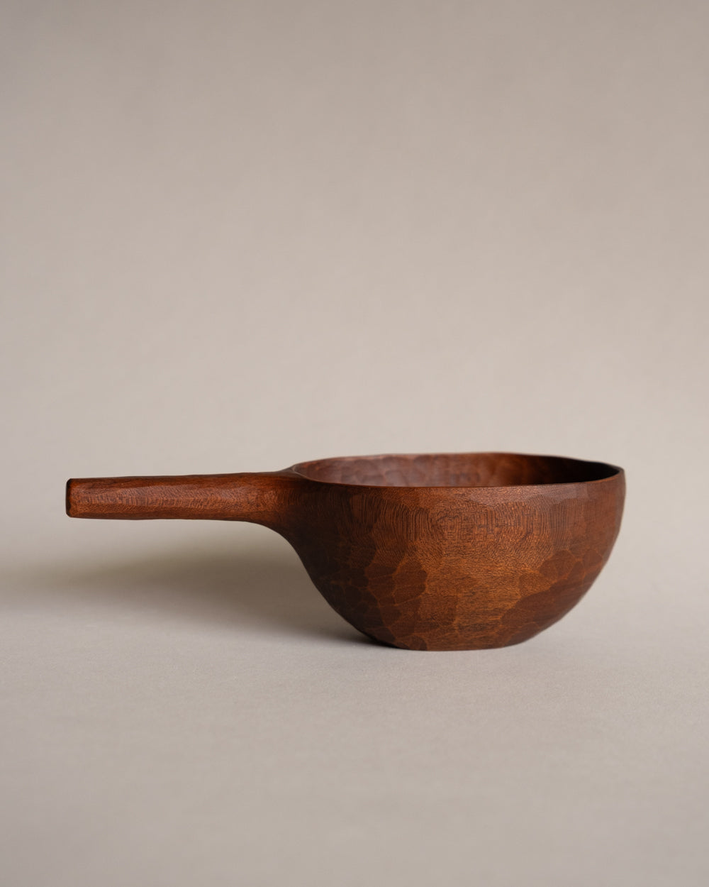 「在農家的生活裡,有時能在裝滿穀物的大袋子中,看到家中不用的漆碗或飯碗。當需要從袋中舀出穀物時,人們會自然伸手拿起身邊的器物——若覺得順手、好用,那件器具便會被長年使用下去,成為生活的一部分。大村先生所製作的『一合椀』,正是象徵著農家生活中樸實景象的手作之物。」——塚本美樹