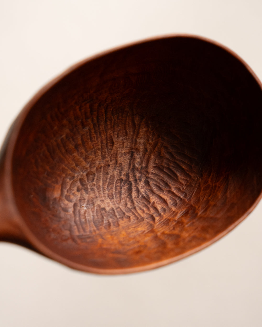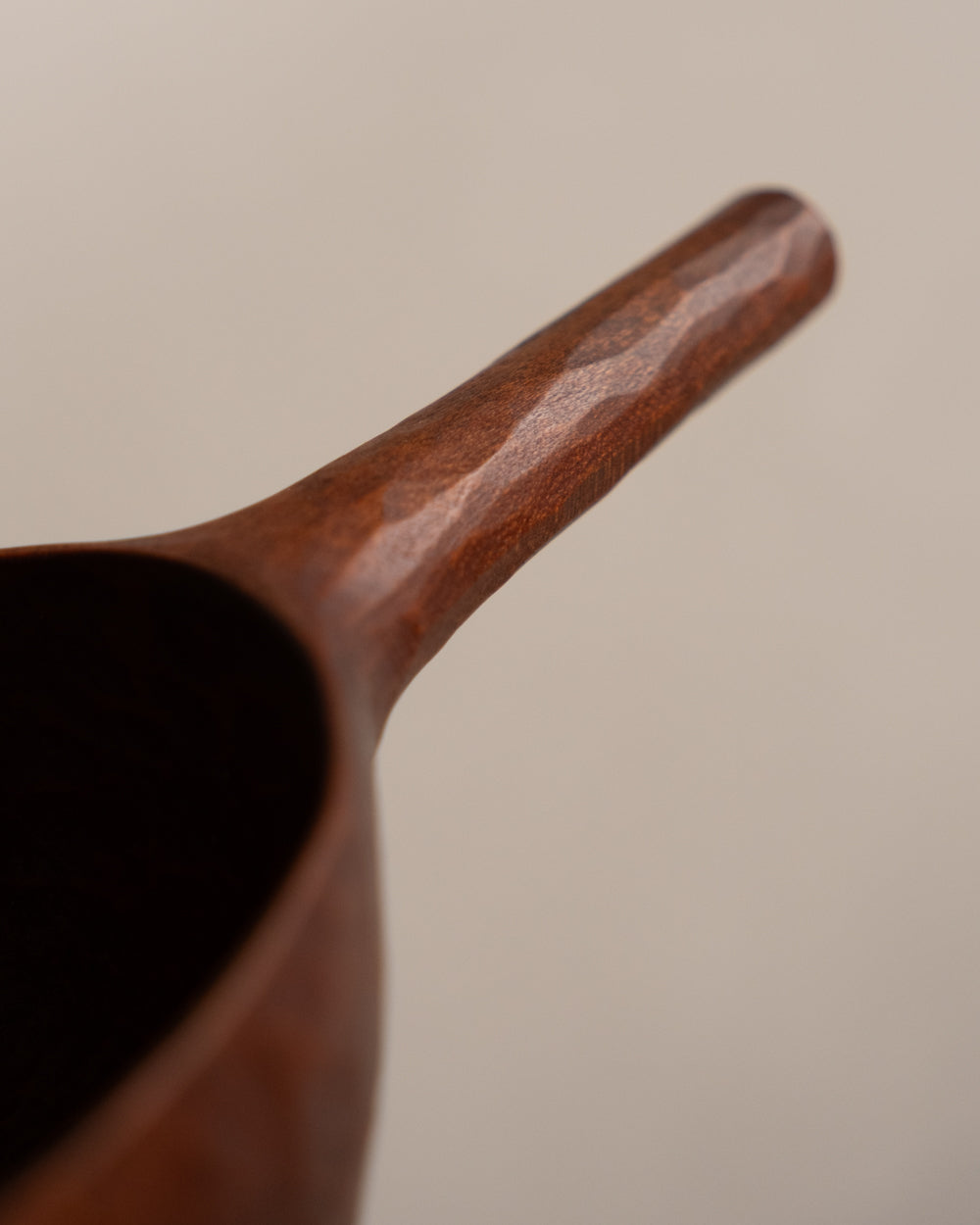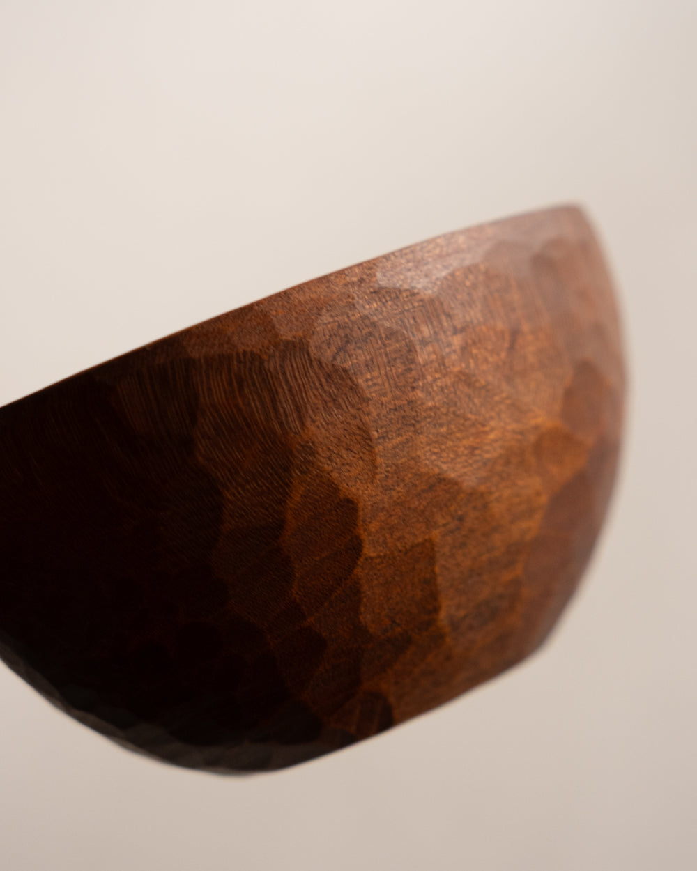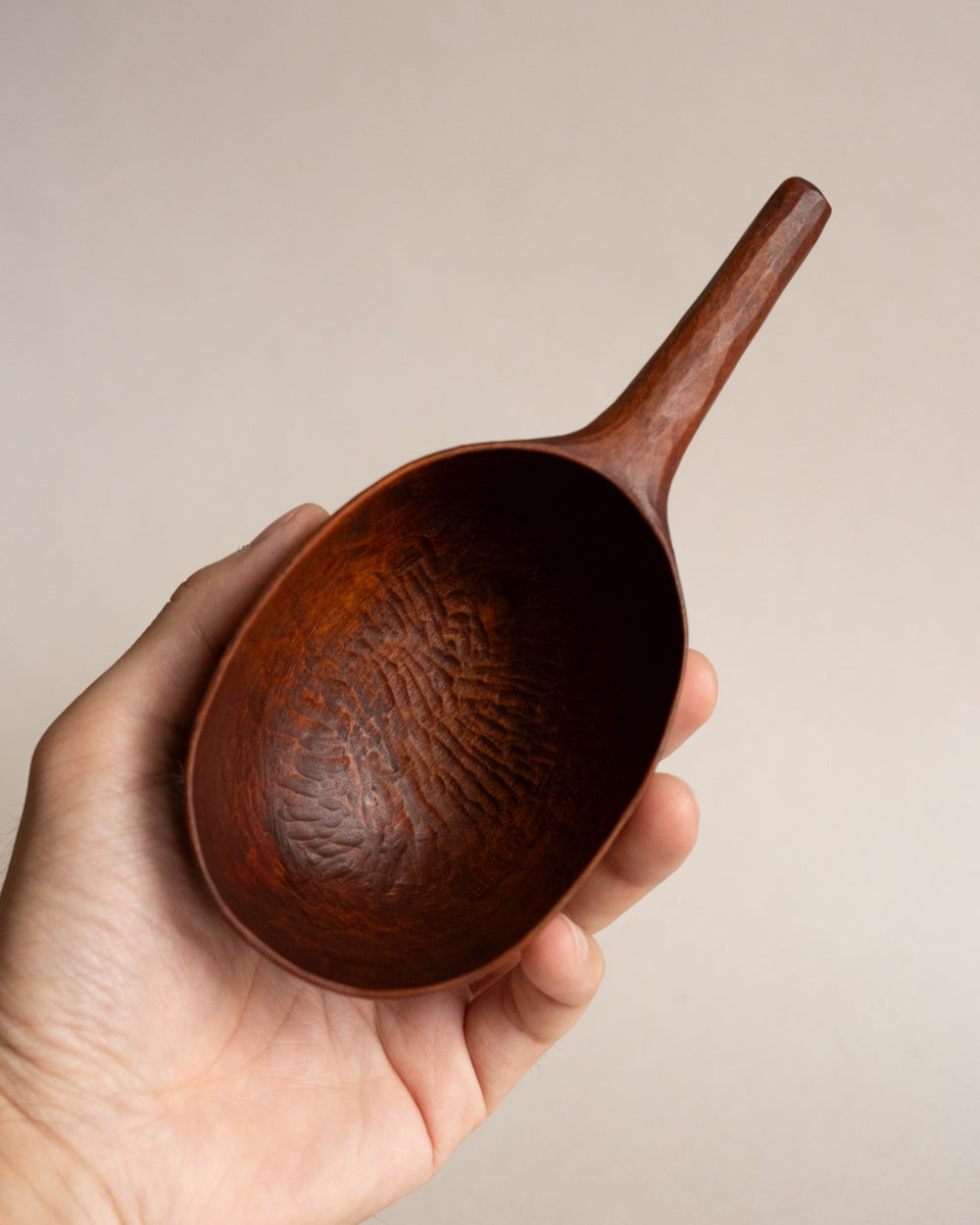 「在農家的生活裡,有時能在裝滿穀物的大袋子中,看到家中不用的漆碗或飯碗。當需要從袋中舀出穀物時,人們會自然伸手拿起身邊的器物——若覺得順手、好用,那件器具便會被長年使用下去,成為生活的一部分。大村先生所製作的『一合椀』,正是象徵著農家生活中樸實景象的手作之物。」——塚本美樹