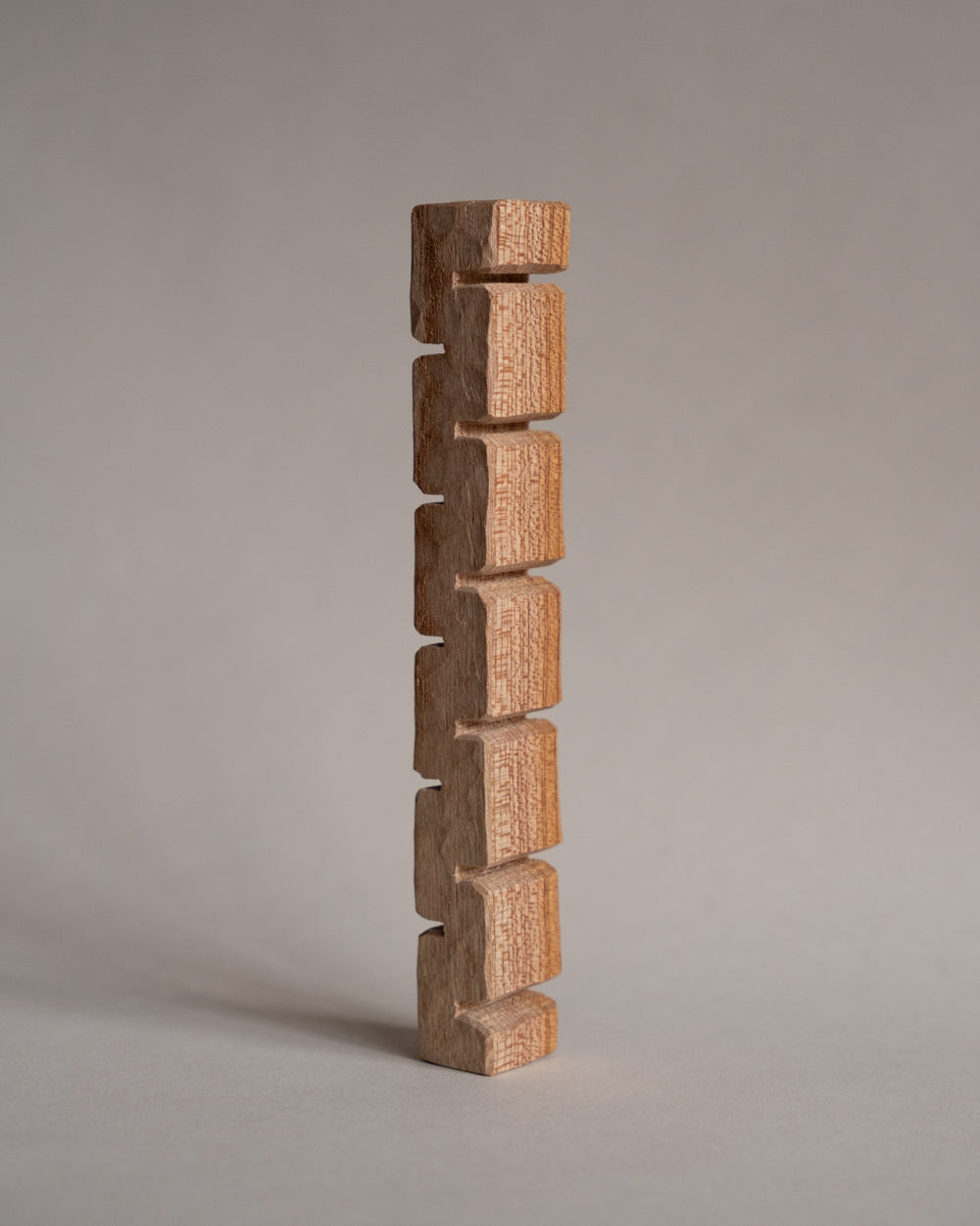 這些小雕刻作品融合了不同的技法和表現形式,有的會使用機台刻磨形狀、有的則使用手工刻鑿。如果在過程中,刻出他自己喜歡的形狀,他會將其製作成大型的雕塑作品;而有的形狀他則覺得維持迷你的尺寸是最理想的。
