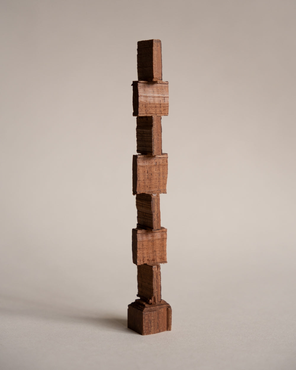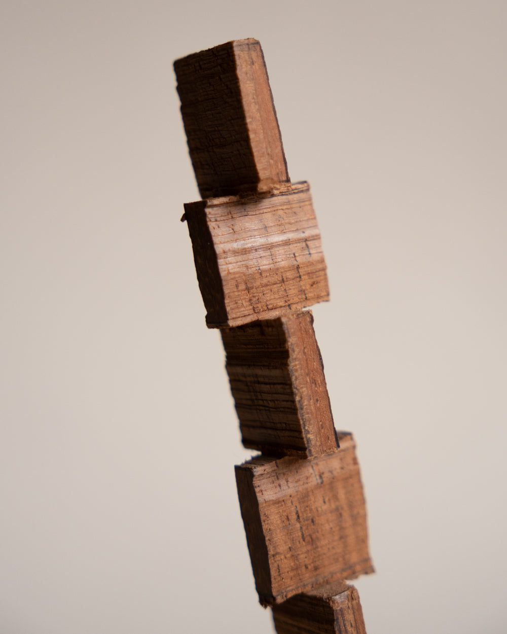 這些小雕刻作品融合了不同的技法和表現形式,有的會使用機台刻磨形狀、有的則使用手工刻鑿。如果在過程中,刻出他自己喜歡的形狀,他會將其製作成大型的雕塑作品;而有的形狀他則覺得維持迷你的尺寸是最理想的。