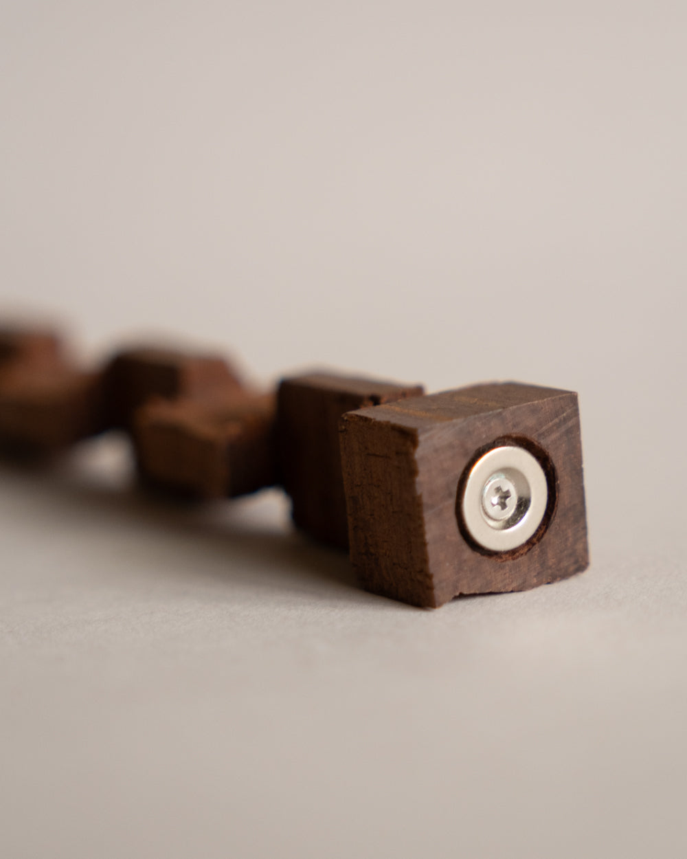 起初,大村並沒有打算販售這系列的作品,它們更像是「雕刻的prototype」一般,被放置在工作室中。然而某次因為友人拜訪時,非常喜歡這些小型雕刻,並詢問了收藏的可能。因此大村思考後,將這些小雕刻底部加上了磁鐵,讓他成為了有功能性的磁吸物件,可以拿來在桌上壓單據和紙條。它可以是空間中的裝飾,也具有其用途。
