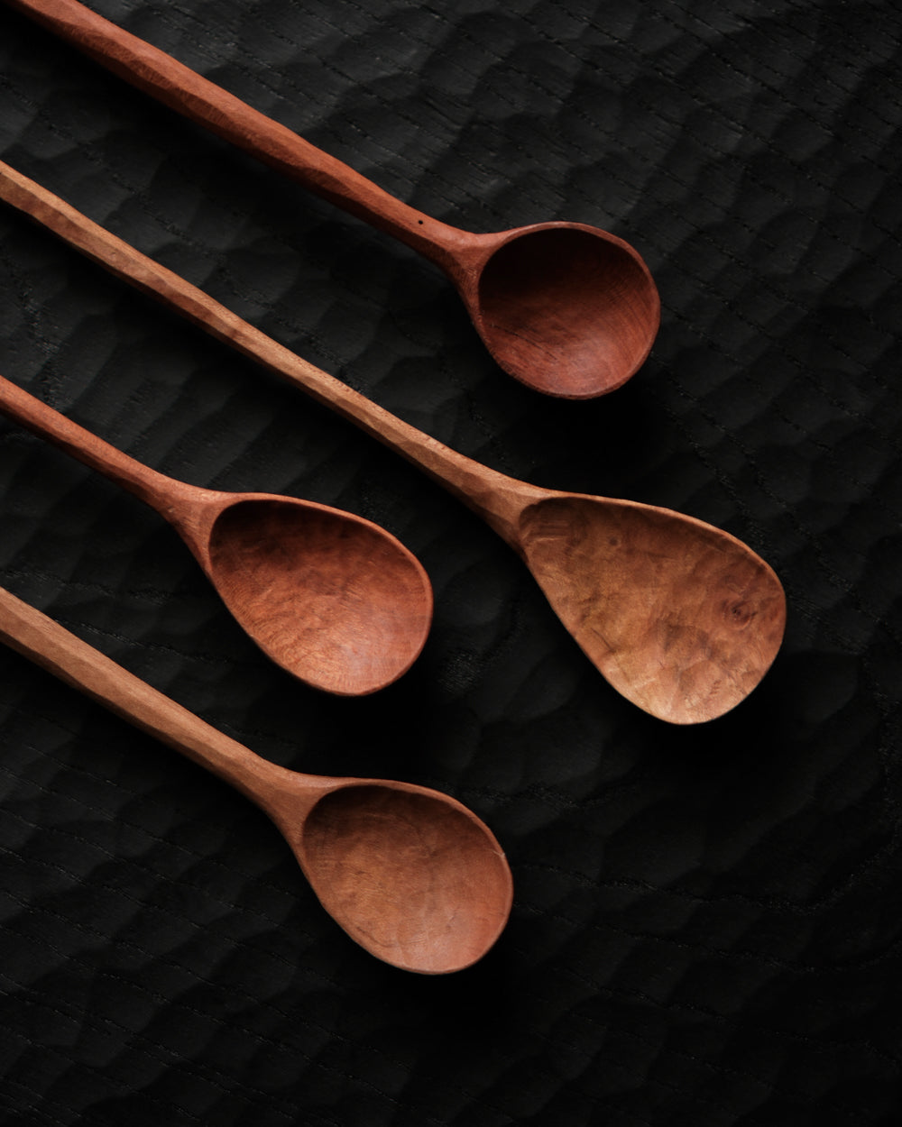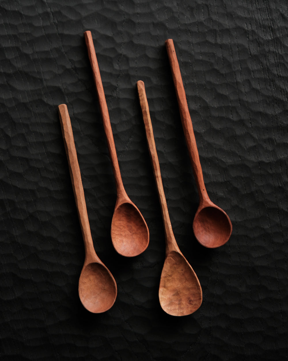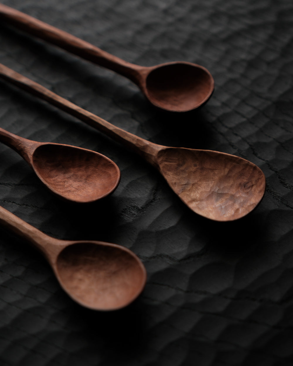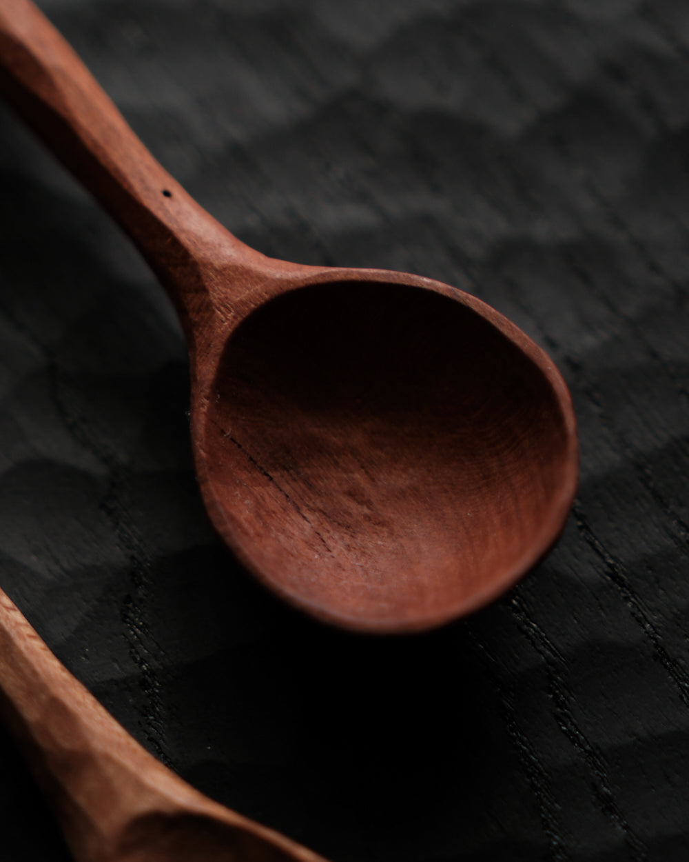 以自然木鑿刻的小木匙,適合作為鹽、糖等調味料與香料的測量匙使用。表面為自然漆塗層,便於清潔與照顧。
