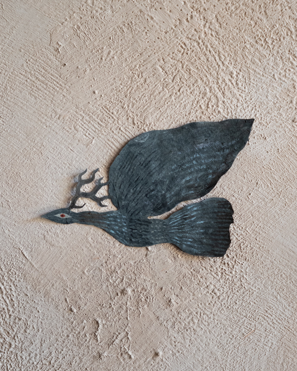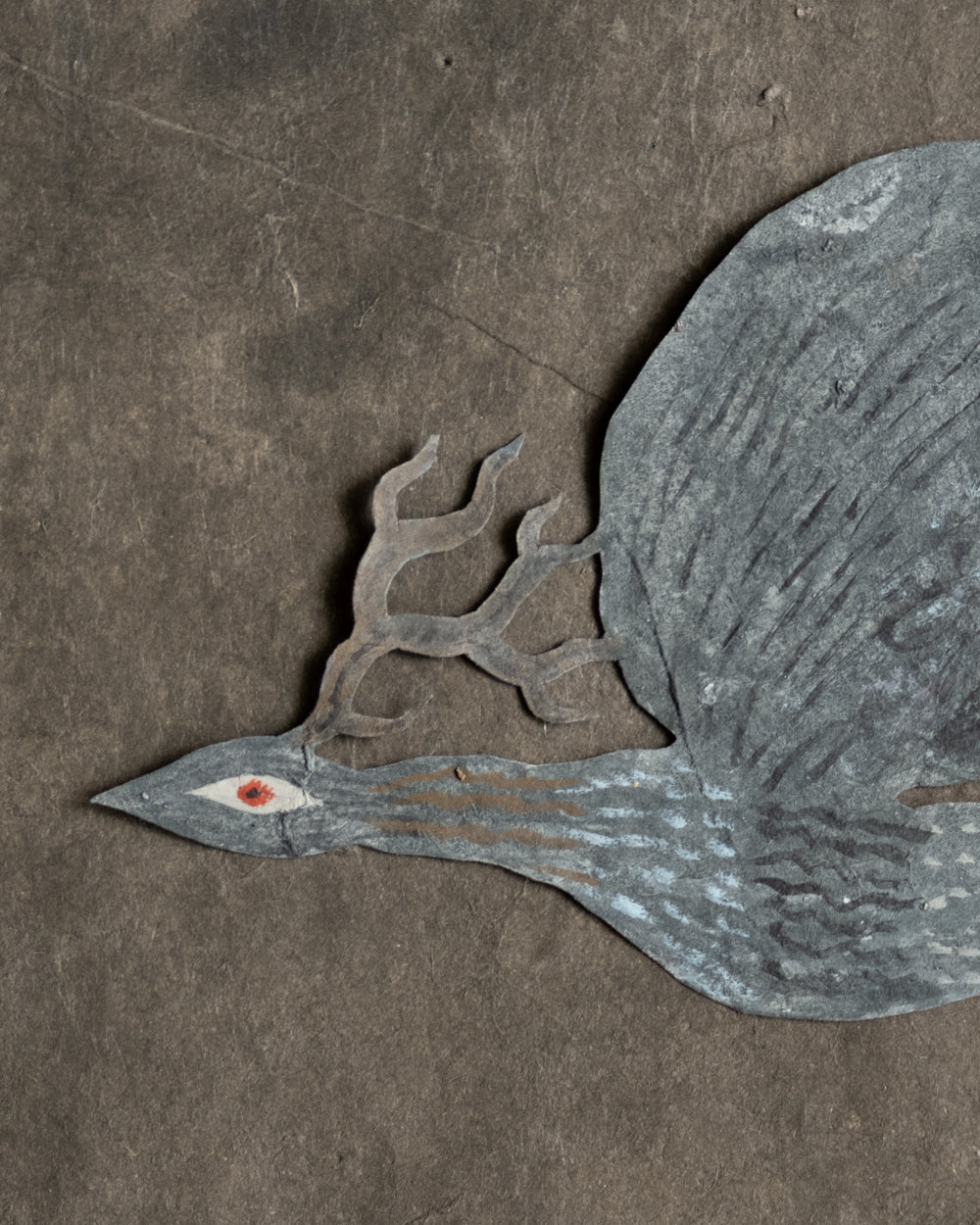 熊谷隼人創作剪紙生物的契機,始於十年前夏日森林裡,遇見的形似鹿的枯木。幾個月後的秋天,他在公園散步時,拾起了幾片落葉,忽然覺得落葉看起來像是鳥。當他在紙上反覆琢磨後,魚、蛇、野獸與人的形象,也逐漸誕生。在這十年間,熊谷畫下了數以百計的剪紙生物。