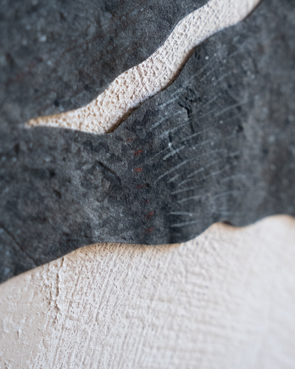 ※ 熊谷隼人的剪紙生物作品,以手工紙與顏料創作而成。每一件作品皆以手工裁切與繪製,因此在紙張纖維、邊緣形狀與顏色層次上,皆會有手工感的表現。這些細微的不均勻與手感,是熊谷繪畫作品的特徵,也代表著每一件生物的獨特性。