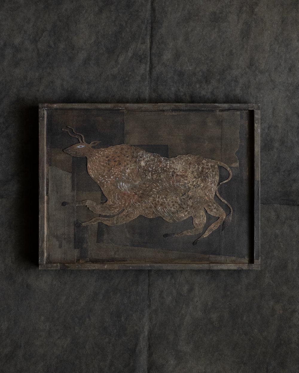 雲、星辰、石頭、落葉⋯⋯身邊的一切都可能化為生物的形象。據說在古代洞窟壁畫中,常能看到巧妙利用岩壁的凹凸起伏,使動物壁畫立體生動的景象。或許他們正是在洞窟壁面無數的褶皺裡,看見了無數湧動的生命。那種曾經存在於古代人眼中的目光,無疑是創造的泉源。」