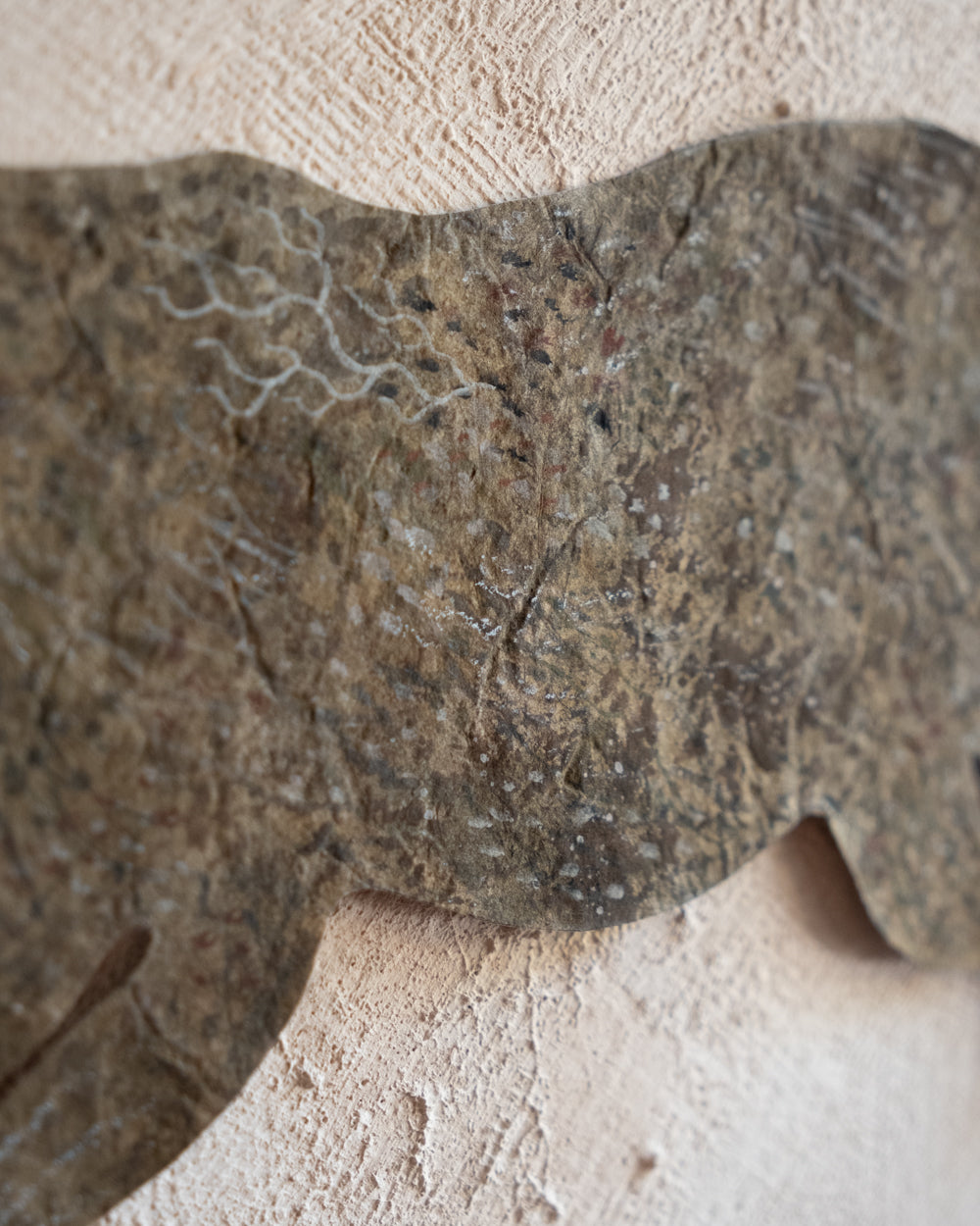 雲、星辰、石頭、落葉⋯⋯身邊的一切都可能化為生物的形象。據說在古代洞窟壁畫中,常能看到巧妙利用岩壁的凹凸起伏,使動物壁畫立體生動的景象。或許他們正是在洞窟壁面無數的褶皺裡,看見了無數湧動的生命。那種曾經存在於古代人眼中的目光,無疑是創造的泉源。」