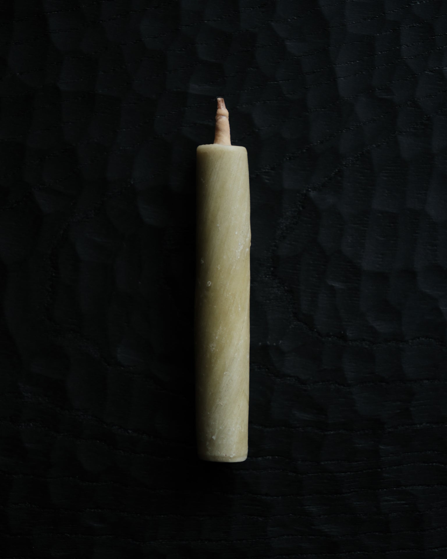 本作品使用九州產的櫨蠟,以日本自古以來的傳統製法——「手掛け」,一支一支手工製作而成。櫨蠟是由櫨樹果實提煉而成,因融點低、質地黏潤,具有不易產生煙灰、也不易滴蠟的特性。顏色則是從松本地區所採集的植物中萃取顏料,以自然色澤為蠟燭上色。
