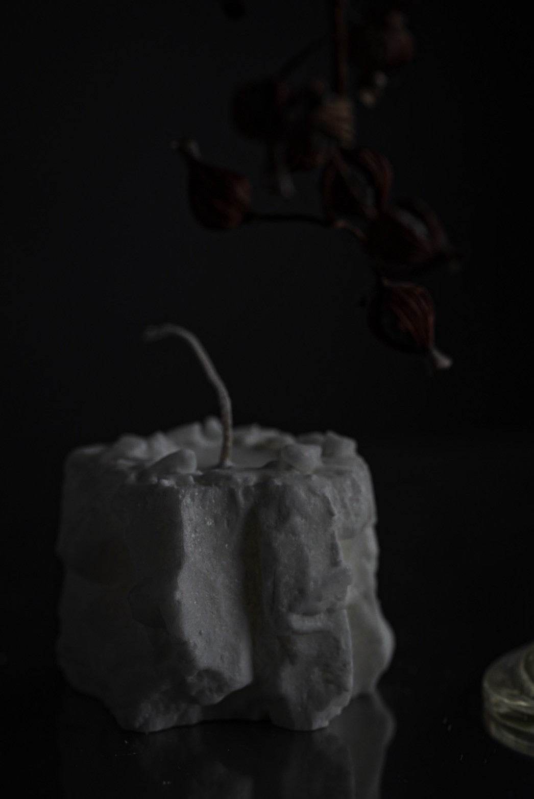 蝋燭 夜々的蠟燭作品為手工製作,即使是同系列作品,作家也會依循創作當下的感覺來堆疊蠟液,因此在蠟燭最外層的肌理與表情上,也都會有不同的表現。故每件作品皆為獨一無二之作,不會重複。